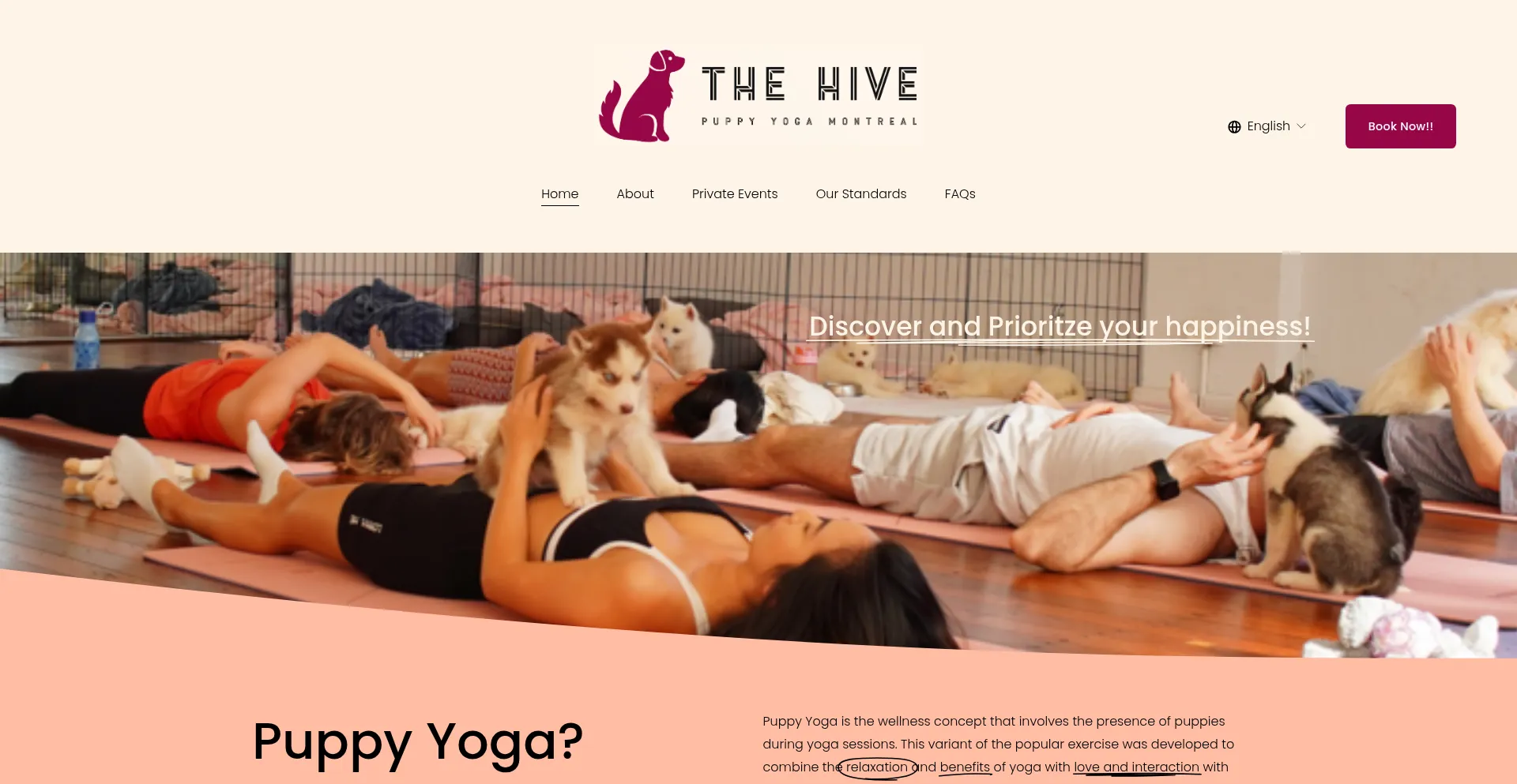 The Hive Puppy Yoga Montreal offers exclusive yoga classes with puppies in Montreal. Our classes are guided by yoga professionals and take place in unique locations.