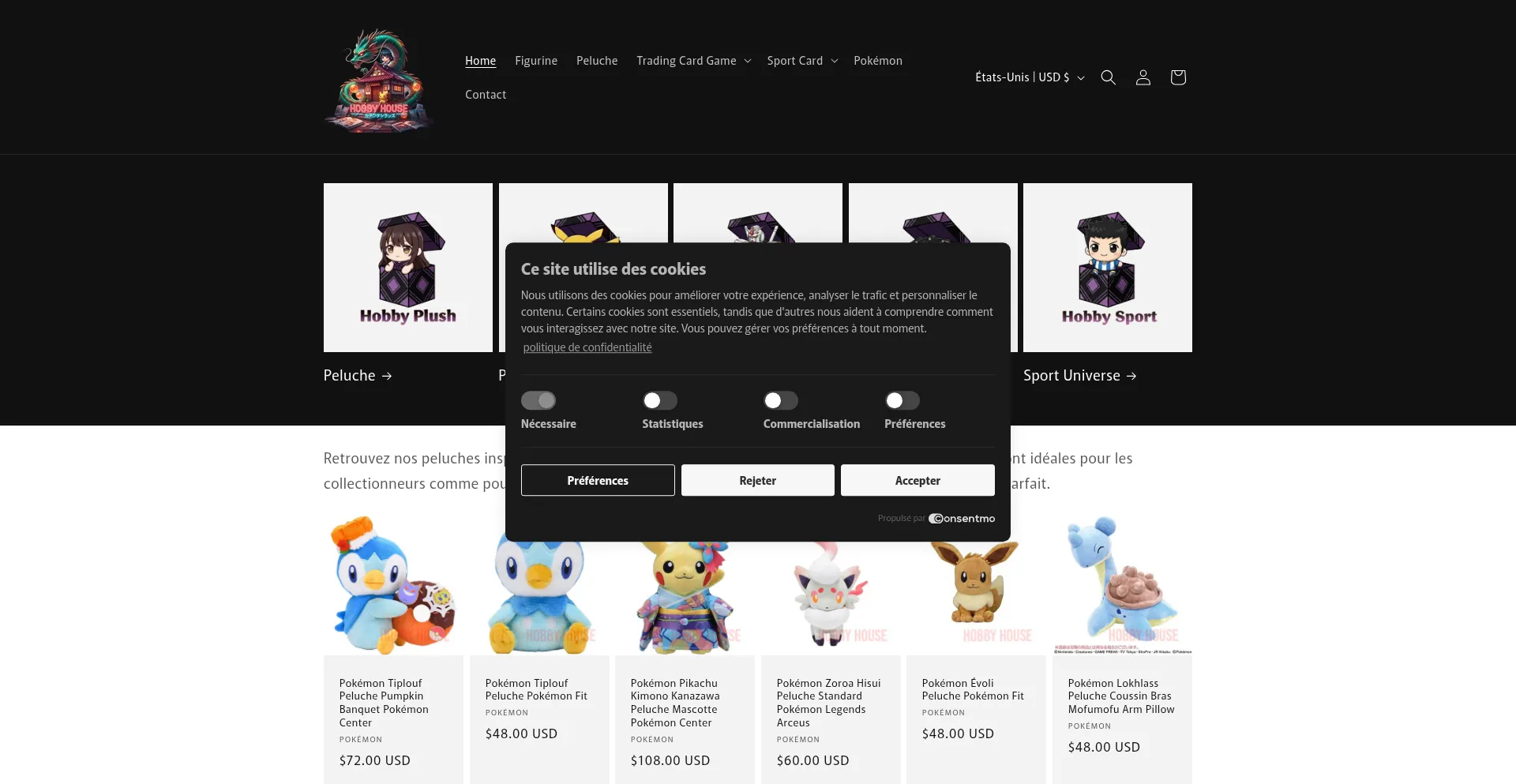 Analysis indicates that hobbyhouse.fr operates as an e-commerce platform facilitating online transactions for goods or services. The website implements shopping cart functionality, payment processing systems, and product catalog features typical of commercial retail operations.