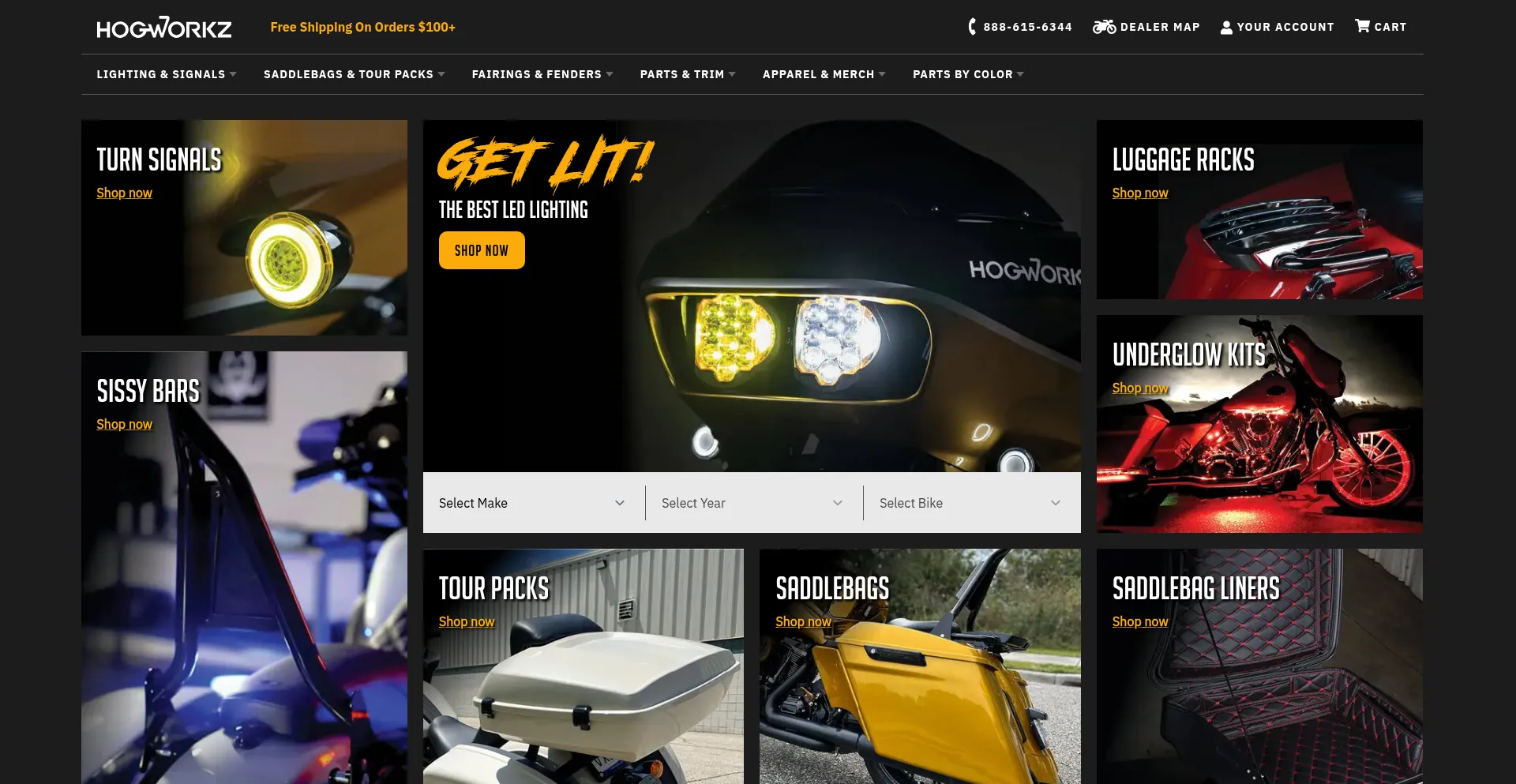 The hogworkz.com website uses Google Tag Manager to add and update tracking tags on its website.