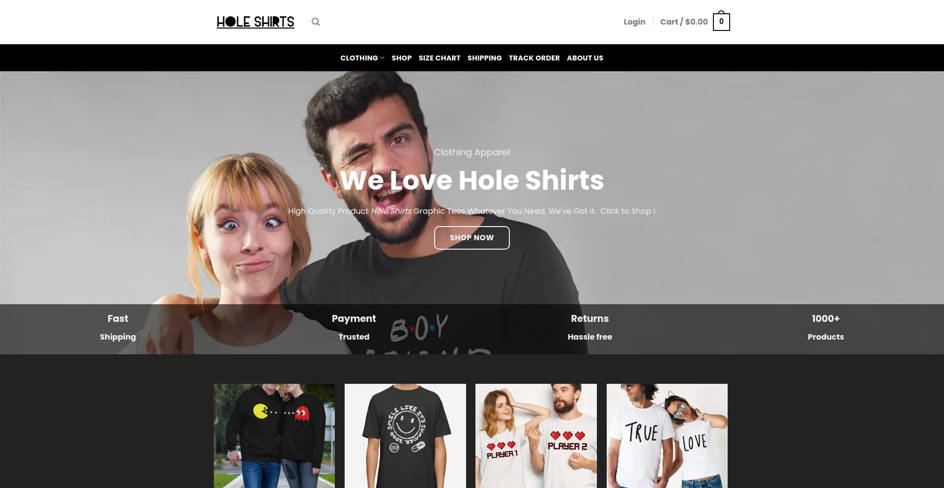 Analysis indicates that holeshirts.com operates as an e-commerce platform facilitating online transactions for goods or services. The website implements shopping cart functionality, payment processing systems, and product catalog features typical of commercial retail operations.
