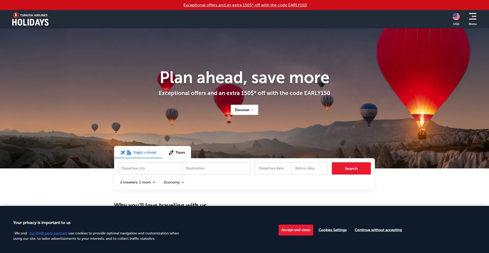 The website implements cookie consent mechanisms in compliance with privacy regulations such as GDPR or CCPA. This demonstrates that holidays.turkishairlines.com adheres to data protection standards and provides users with control over personal data collection practices.