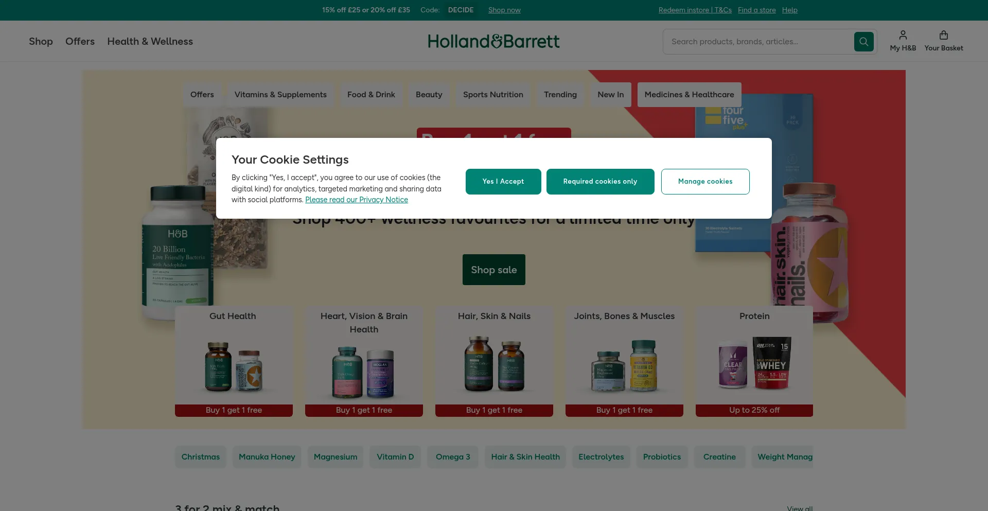 The website implements cookie consent mechanisms in compliance with privacy regulations such as GDPR or CCPA. This demonstrates that hollandandbarrett.com adheres to data protection standards and provides users with control over personal data collection practices.