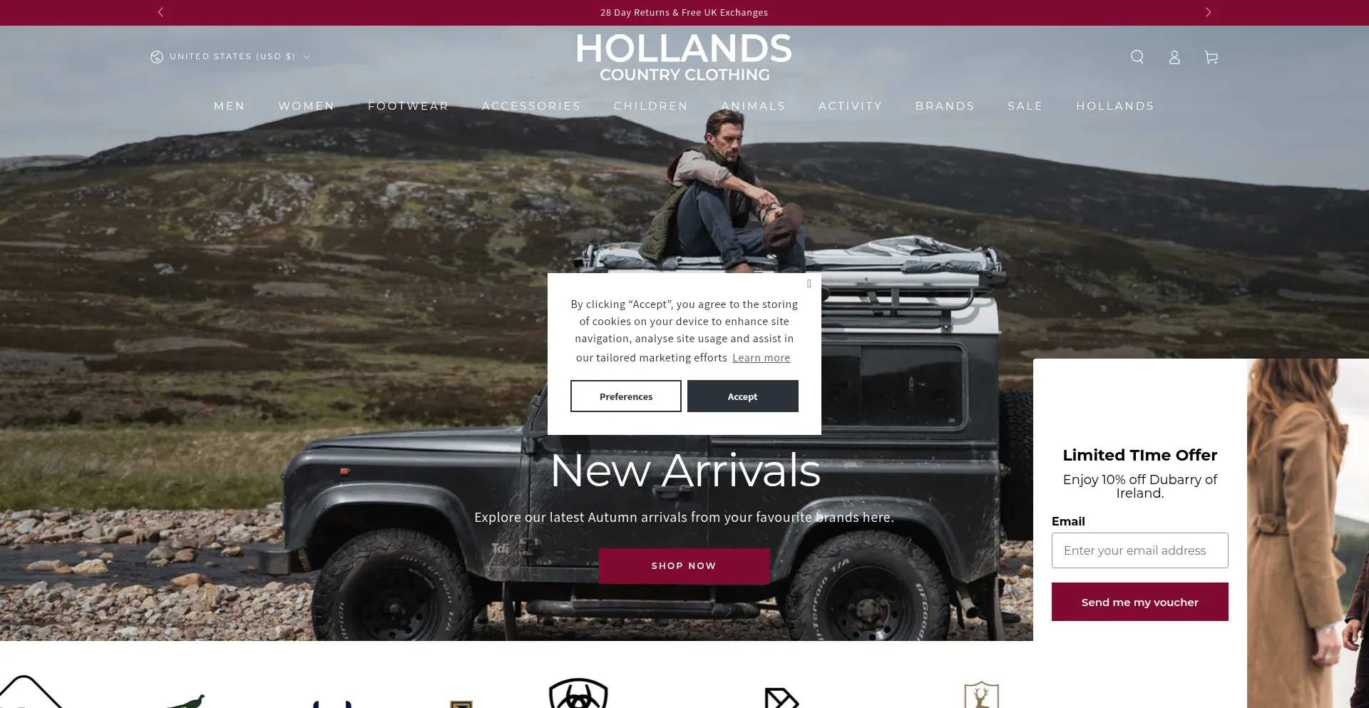 The website implements cookie consent mechanisms in compliance with privacy regulations such as GDPR or CCPA. This demonstrates that hollandscountryclothing.co.uk adheres to data protection standards and provides users with control over personal data collection practices.