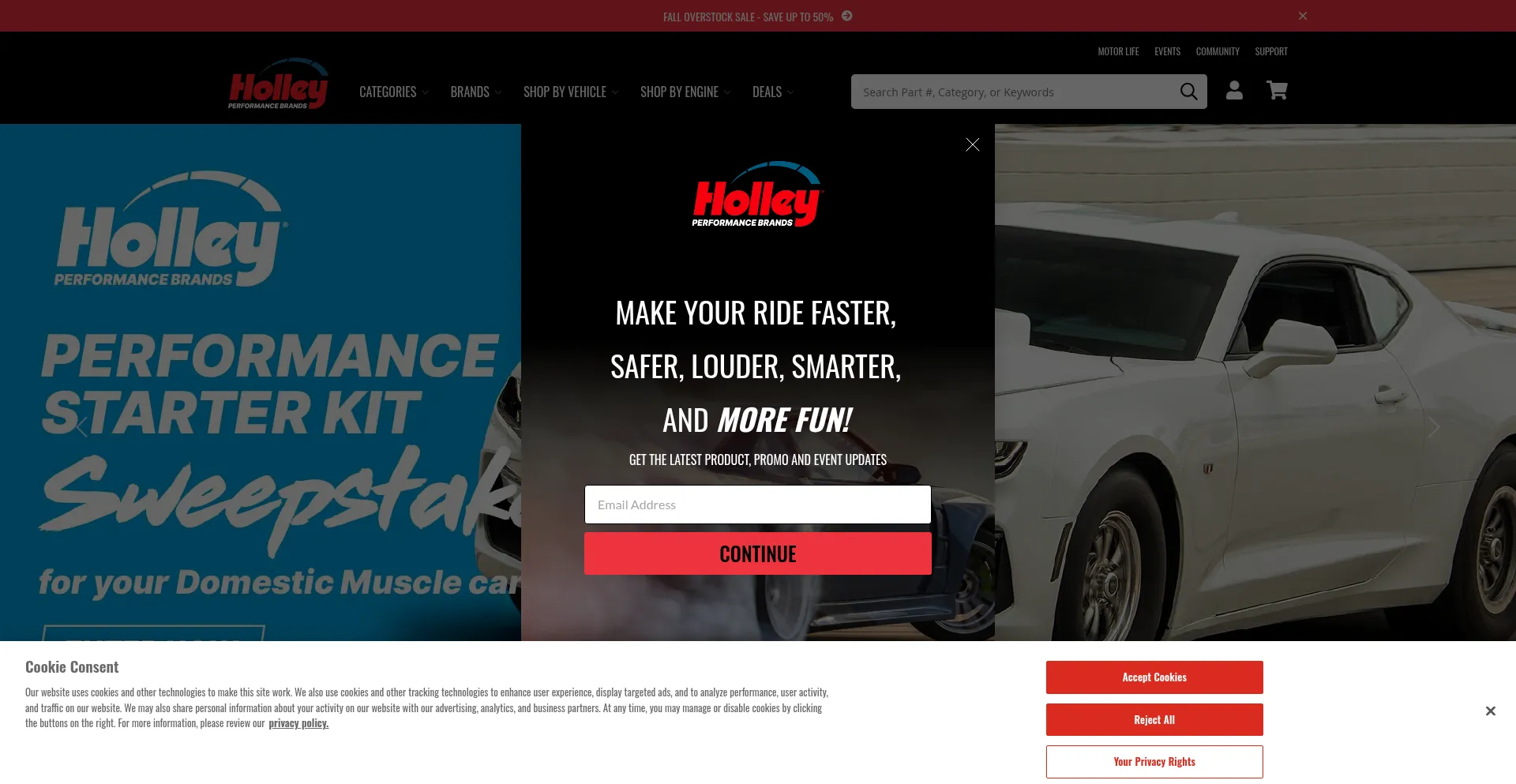 The website implements cookie consent mechanisms in compliance with privacy regulations such as GDPR or CCPA. This demonstrates that holley.com adheres to data protection standards and provides users with control over personal data collection practices.