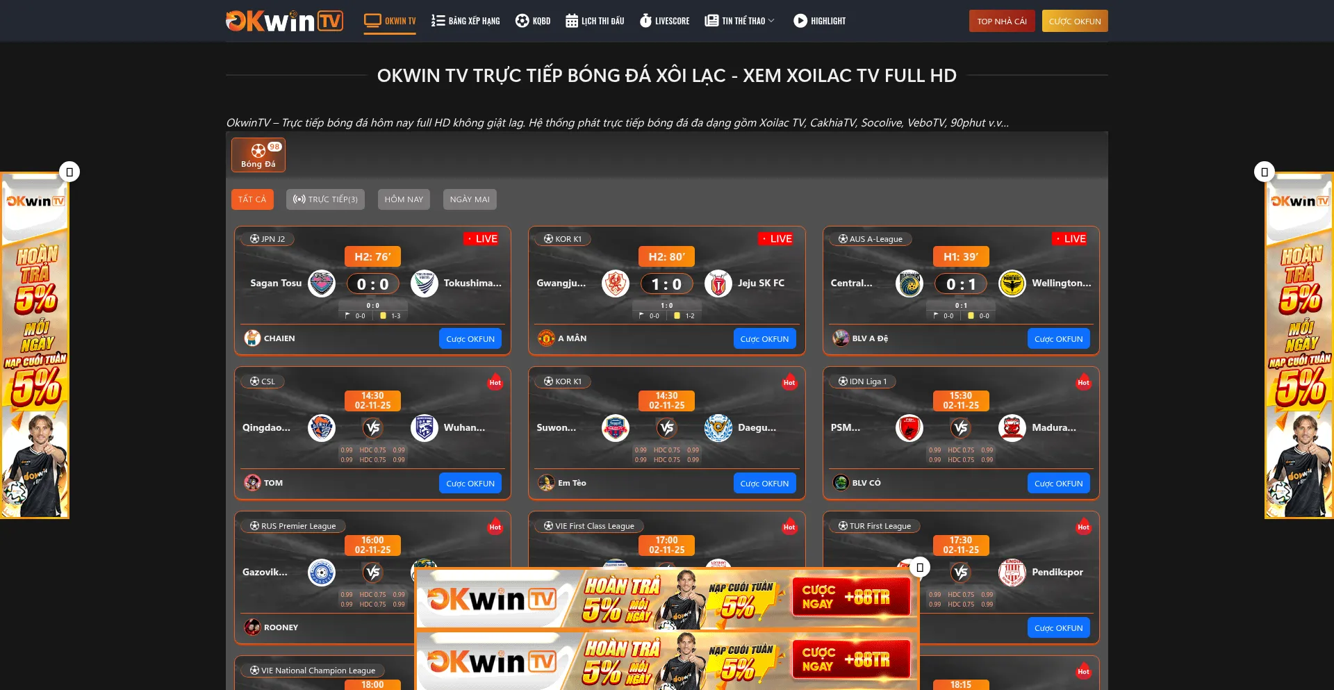 Okwin TV Trực Tiếp Bóng Đá Xôi Lạc - Xem Xoilac TV Full HD