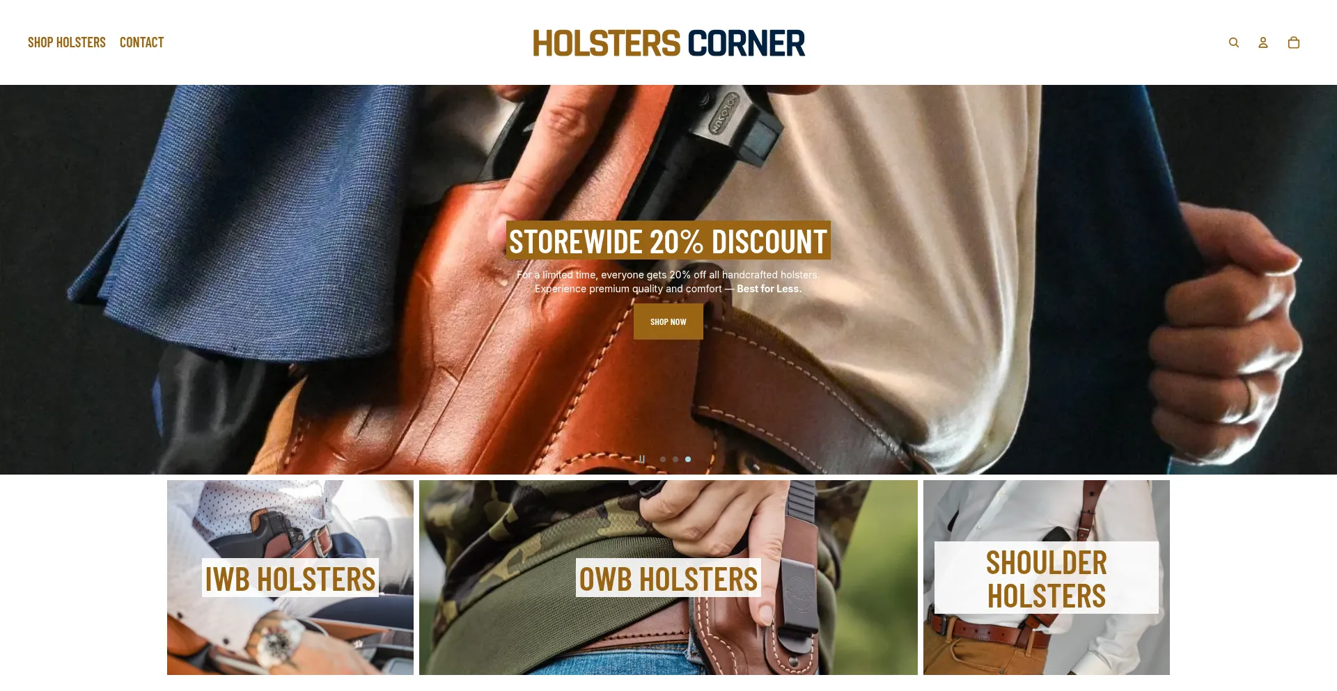 Analysis indicates that holsterscorner.com operates as an e-commerce platform facilitating online transactions for goods or services. The website implements shopping cart functionality, payment processing systems, and product catalog features typical of commercial retail operations.
