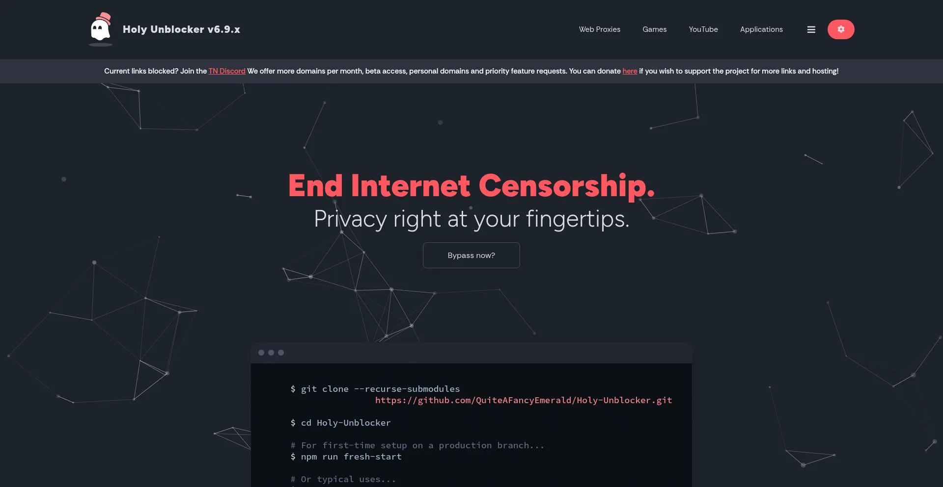 Holy Unblocker LTS is a cutting-edge web proxy service designed to bypass web filters and blockers. Whether dealing with client-side or network-based censorship, Holy Unblocker ...