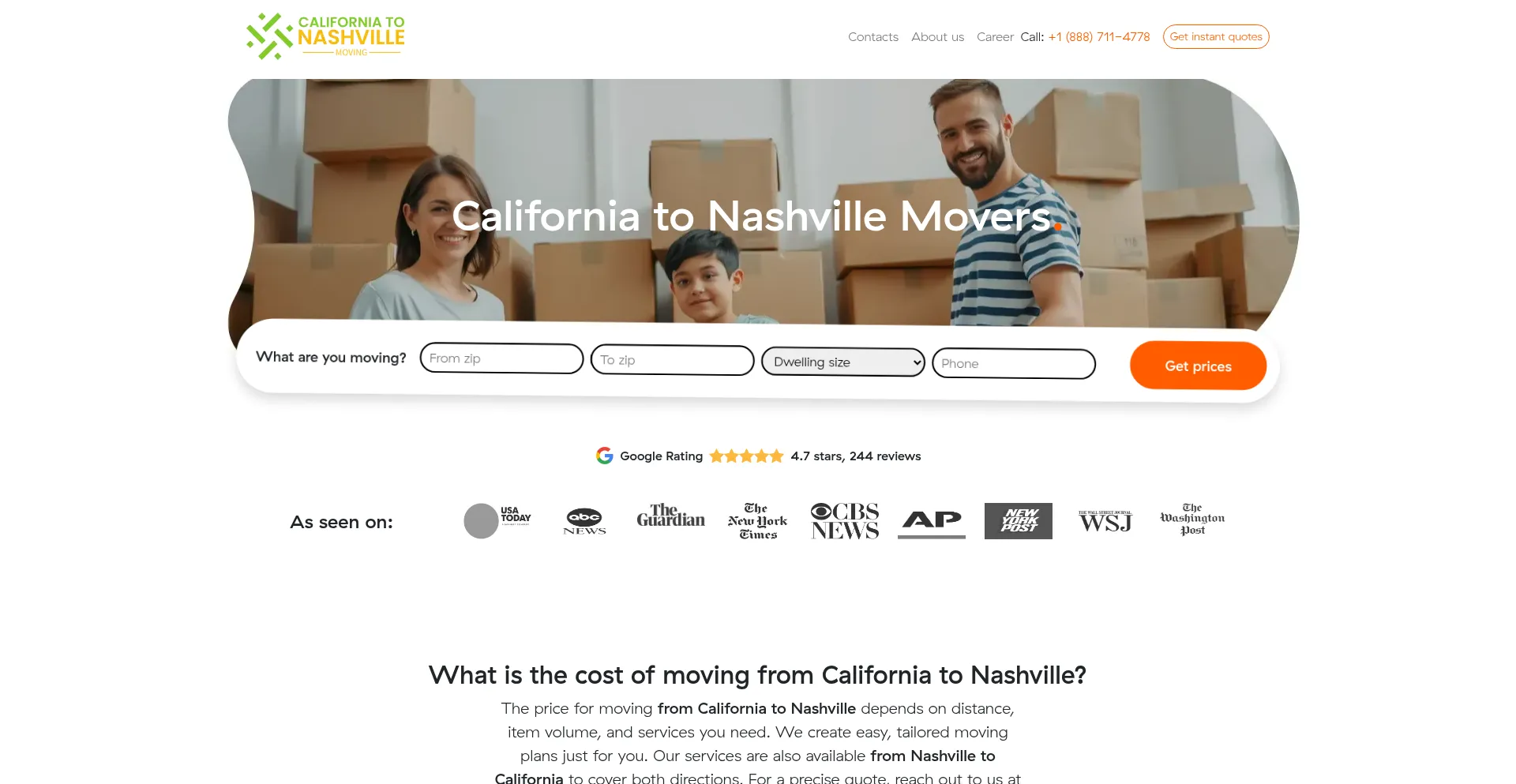 Licensed and insured movers from California to Nashville. Efficient and tailored moving solutions for all sizes. Comprehensive services from packing to transportation and setup.