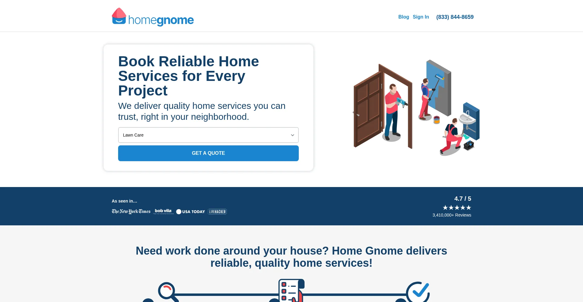 Home Gnome delivers reliable, quality home services at affordable prices with just a few clicks.