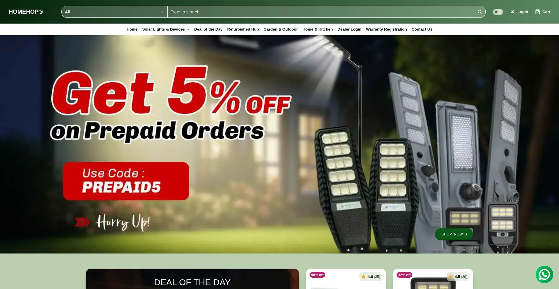 Analysis indicates that homehop.in operates as an e-commerce platform facilitating online transactions for goods or services. The website implements shopping cart functionality, payment processing systems, and product catalog features typical of commercial retail operations.