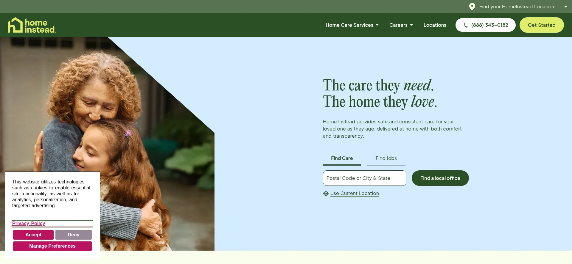 The homeinstead.com website uses Google Tag Manager to add and update tracking tags on its website.
