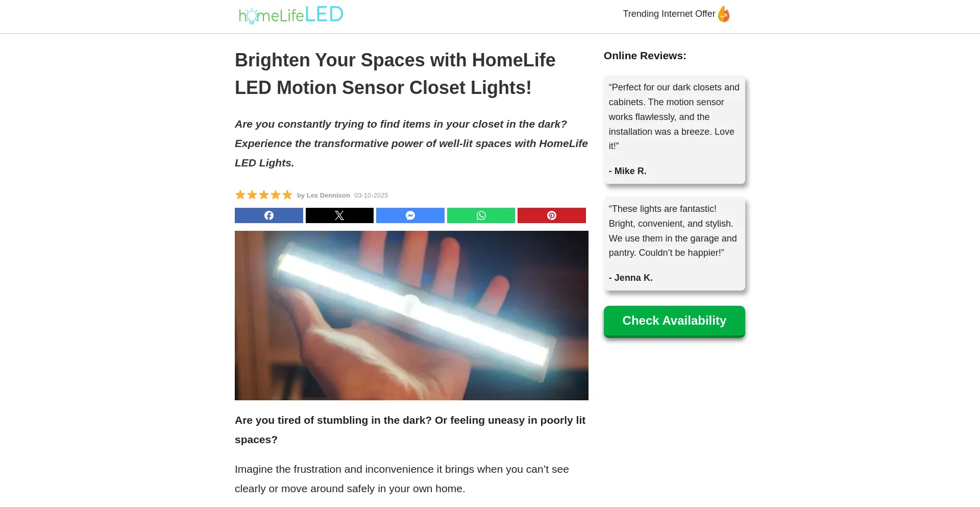 Say goodbye to dark spaces with HomeLife LED Lights. Enjoy instant illumination and effortless convenience. Shop now for a special discount!