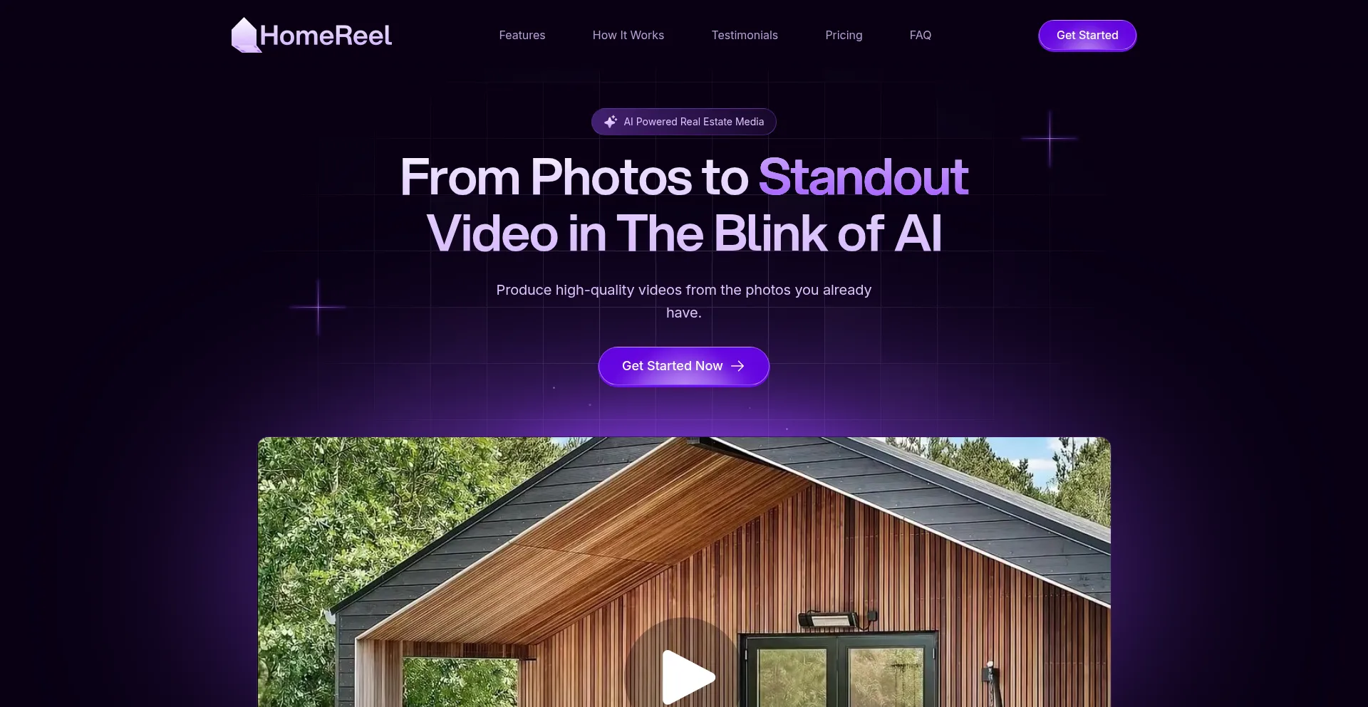 Realtors can transform photos into AI powered listing videos in minutes. No filming required. Create, customize and share property videos effortlessly with HomeReel.