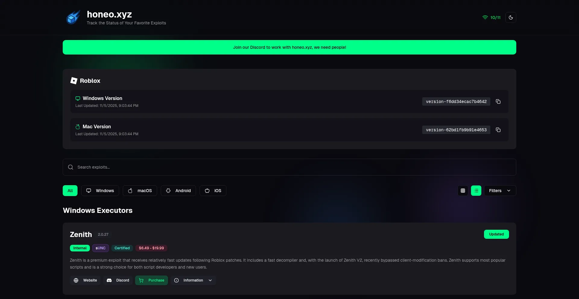 Honeo.xyz - Track the Status of Your Favorite Exploits.