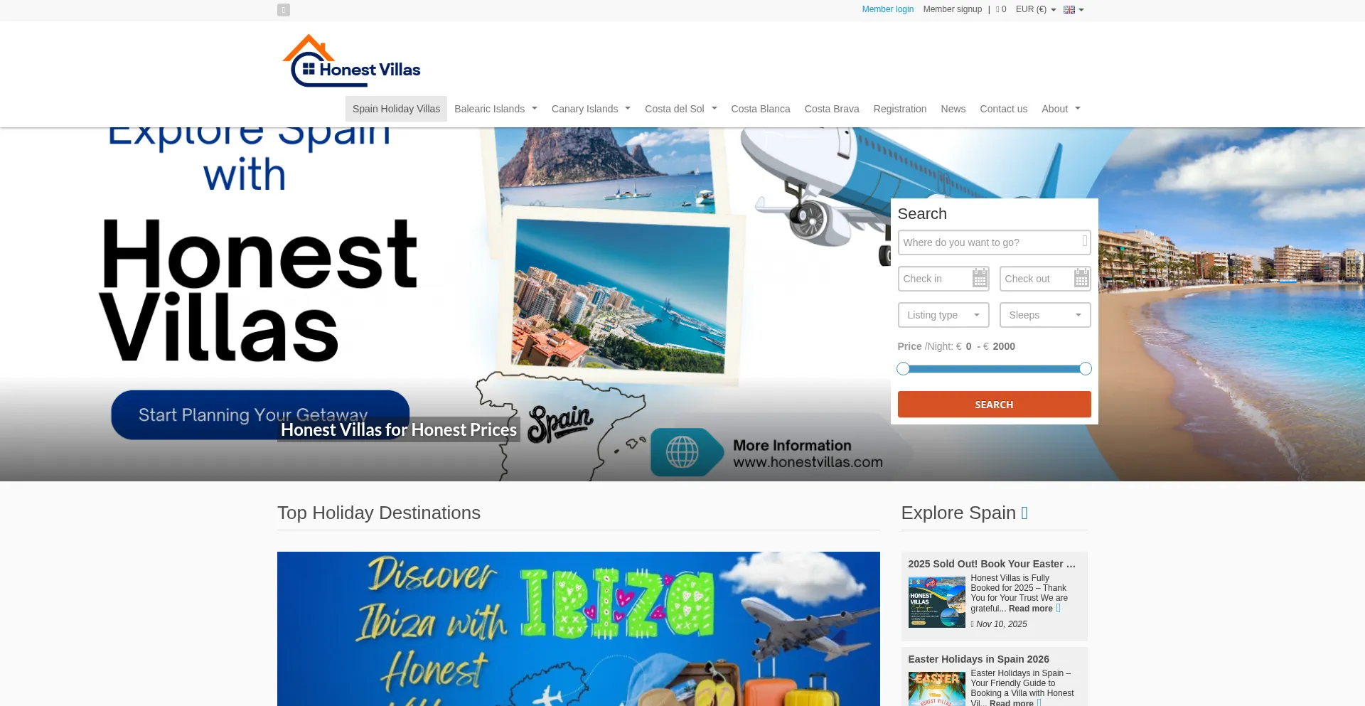 Book your dream Spain holiday villa with Honest Villas. Explore luxury rentals with pools, sea views, and top locations across Ibiza, Mallorca, Costa del Sol.
