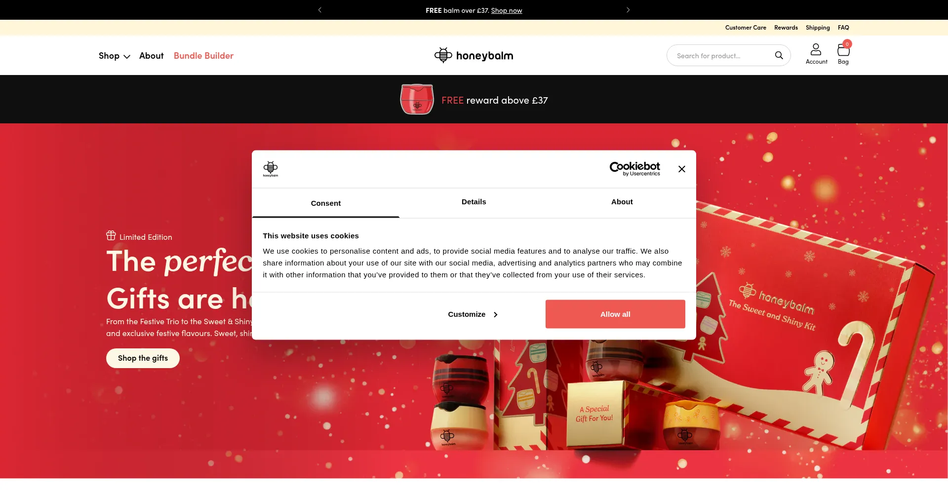 The website implements cookie consent mechanisms in compliance with privacy regulations such as GDPR or CCPA. This demonstrates that honeybalm.co.uk adheres to data protection standards and provides users with control over personal data collection practices.