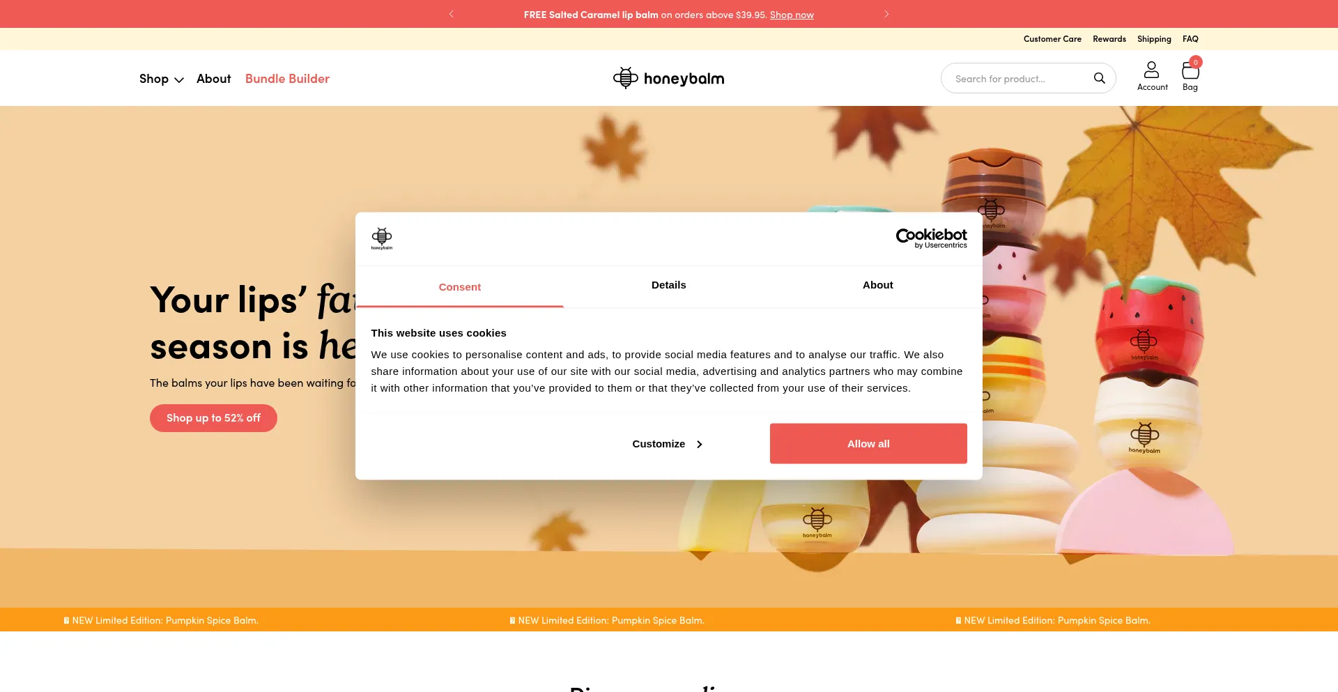 The website implements cookie consent mechanisms in compliance with privacy regulations such as GDPR or CCPA. This demonstrates that honeybalm.com adheres to data protection standards and provides users with control over personal data collection practices.