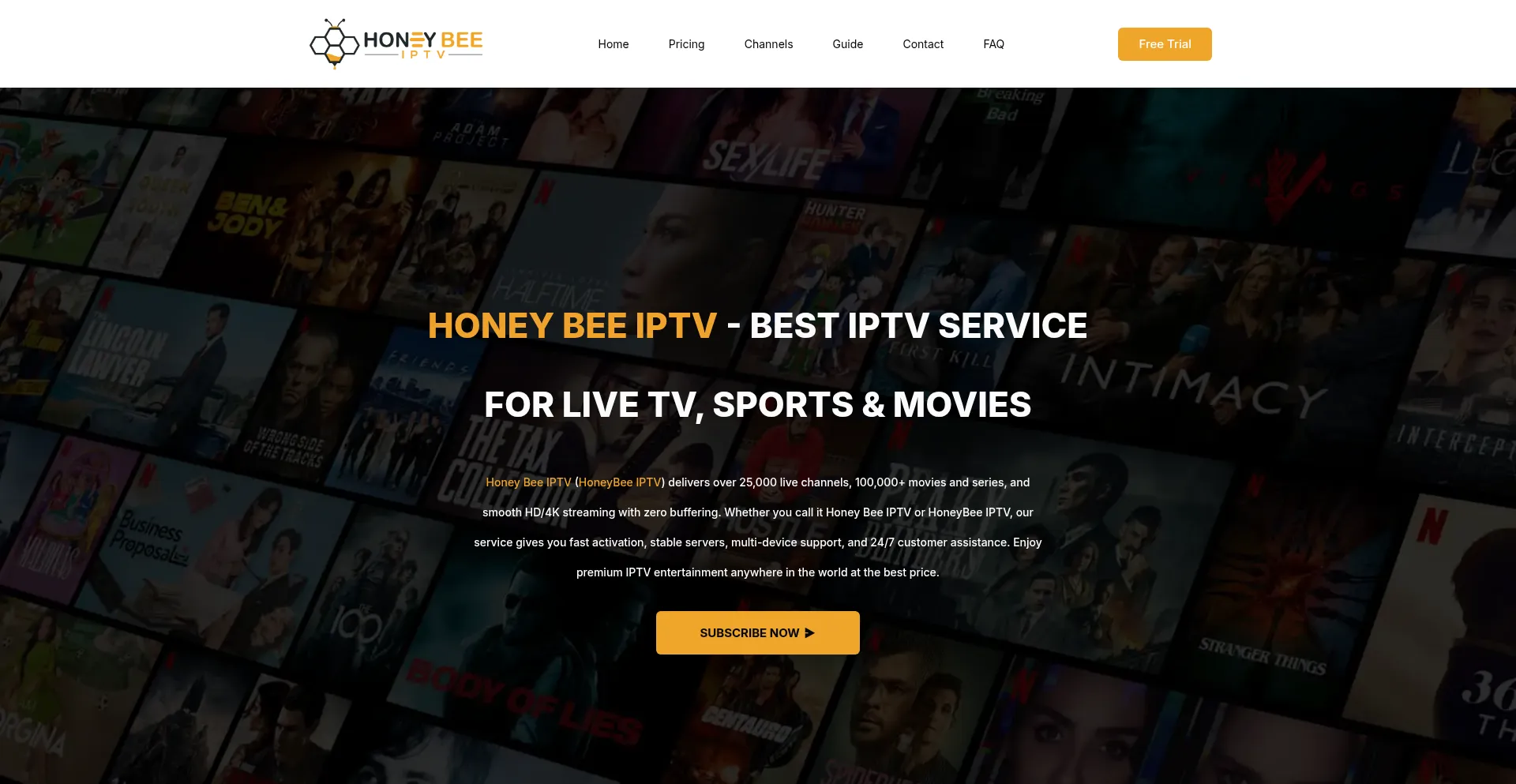 Honey Bee IPTV offers 25,000+ live channels, HD & 4K streaming, sports, news & movies. Enjoy seamless entertainment on all devices. Official Website.
