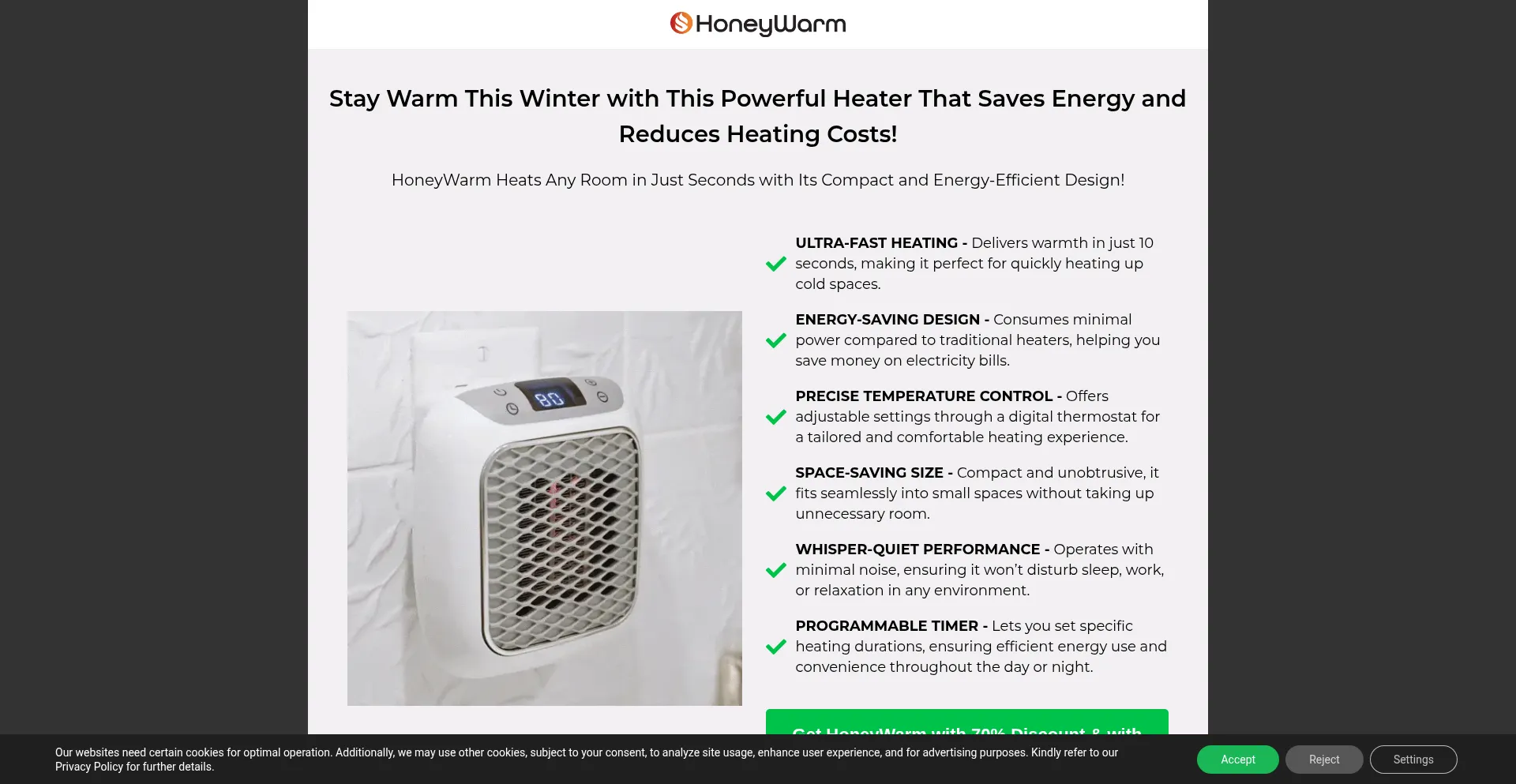 The website implements cookie consent mechanisms in compliance with privacy regulations such as GDPR or CCPA. This demonstrates that honeywarm.store adheres to data protection standards and provides users with control over personal data collection practices.