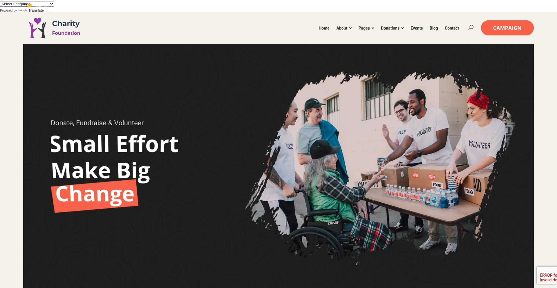 Nonprofit Organization, Registration Form, Google Tag Manager, Live Chat, Google Translate, Young Domain
