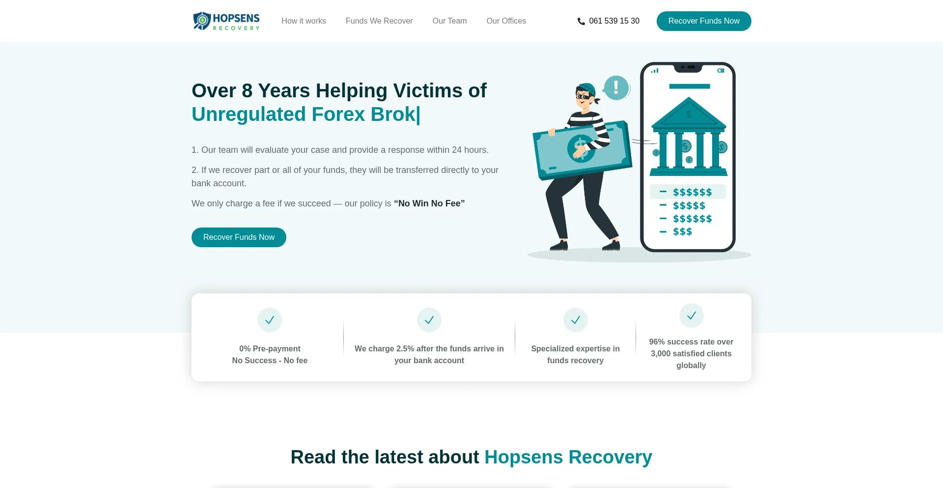 The website hopsens.com advertises fund recovery services for lost or stolen assets. While some operate on contingency fee structures, others may require upfront payments, which can indicate fraudulent operations. Verify credentials and regulatory compliance before engaging such services.
