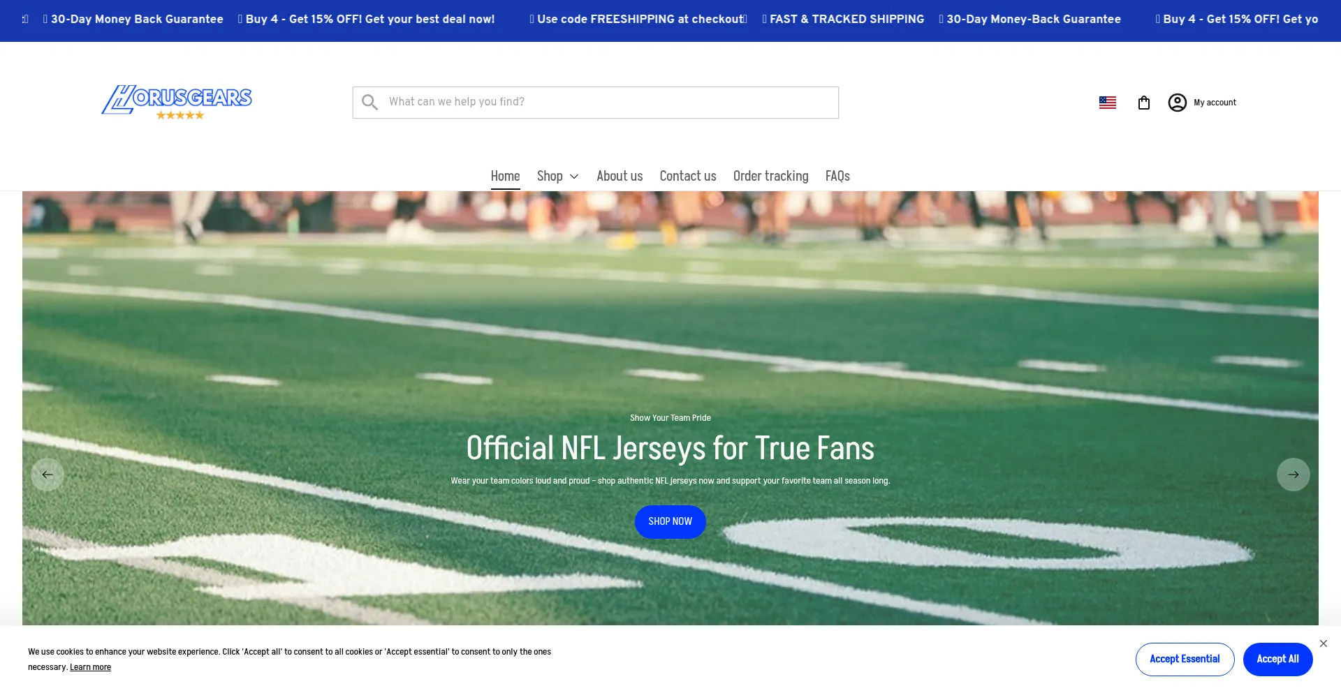 Buy official jerseys online at Horus Gears. Football, Basketball, Baseball & NCAA sportswear with top quality, unique POD designs & fast delivery in the USA!
