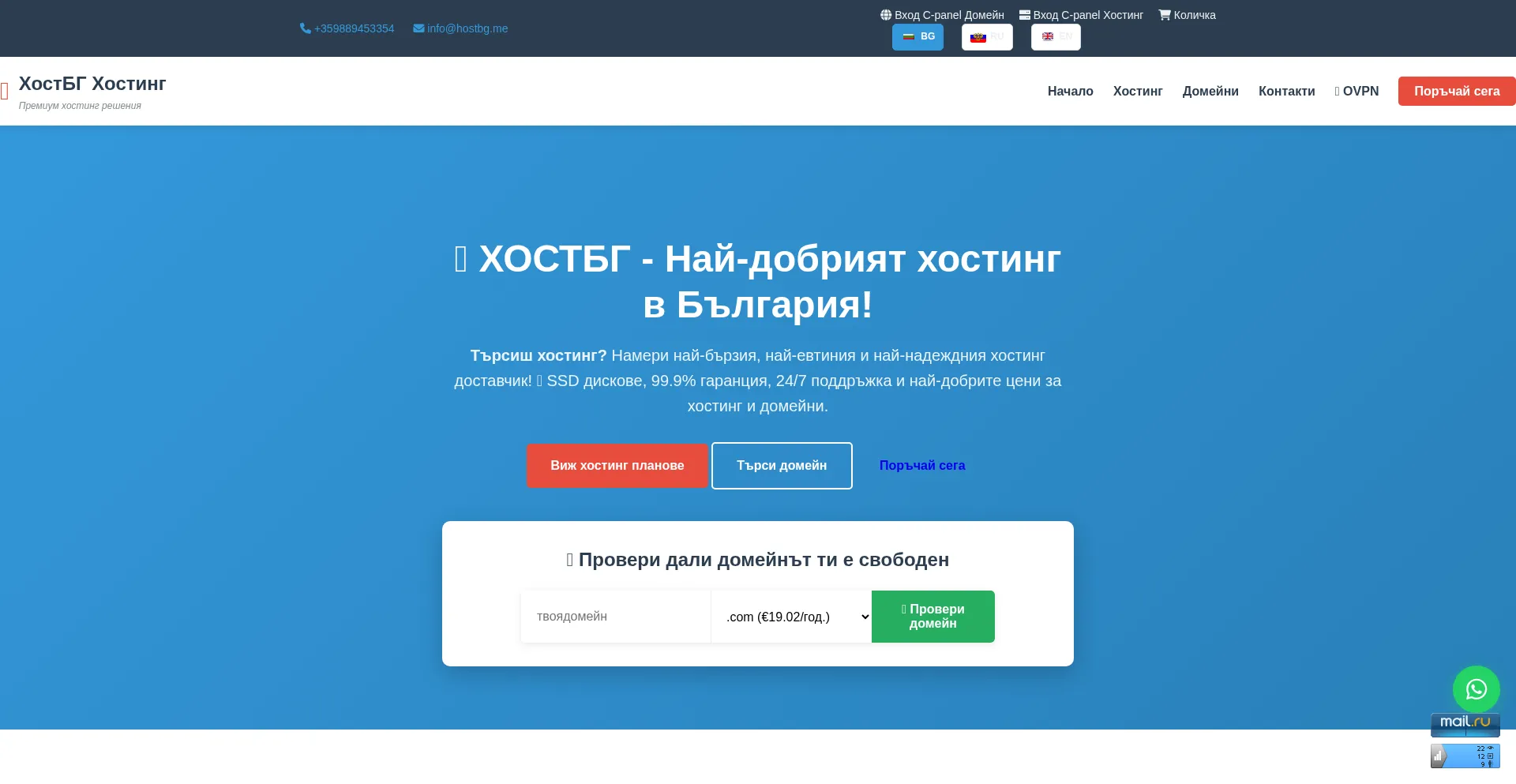 Хостбг Хостинг - №1 в България! Бърз SSD хостинг, домейни, VPS, SSL. 99.9% гаранция, 24/7 поддръжка. Най-евтин...
