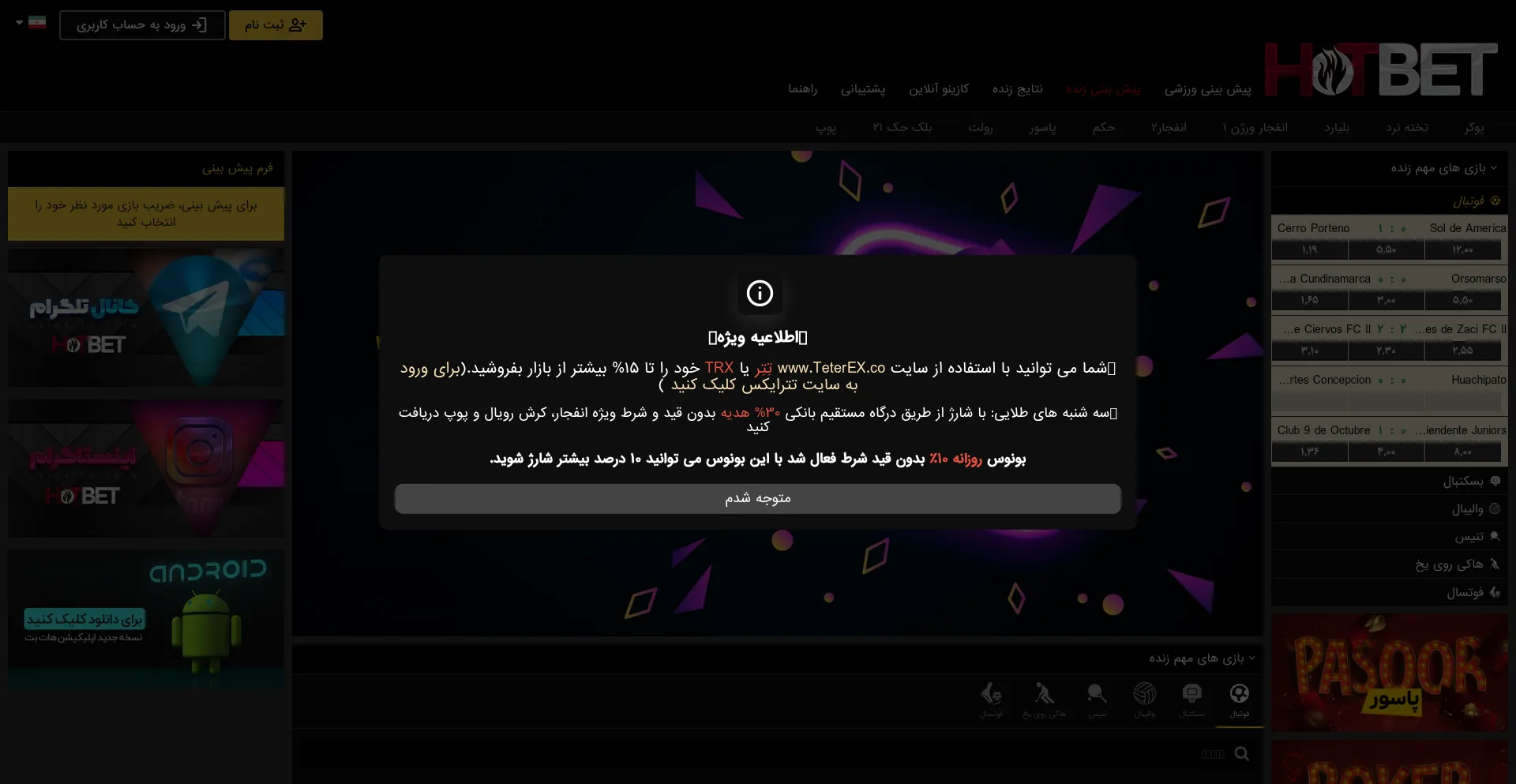 هات بت (hotbet.org) سایت شرط بندی فوتبال و کازینو آنلاین