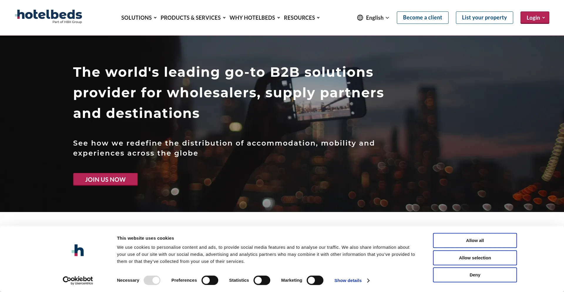 newrelic.com www.youtube.com app.hotelbeds.com www.amazon.com mediasolutions.hbxgroup.com cdn.weglot.com documents.marketo.com api.weglot.com www.riskified.com imgsct.cookiebot.com +42 more