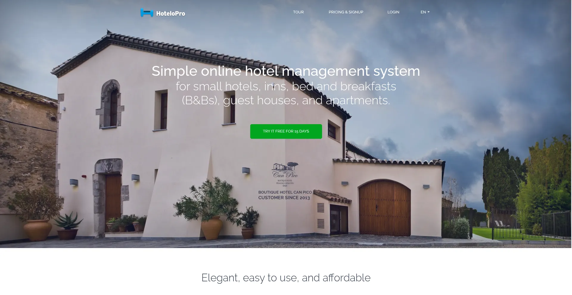 Online hotel management system for small hotels, inns, B&Bs, guest houses, and apartments