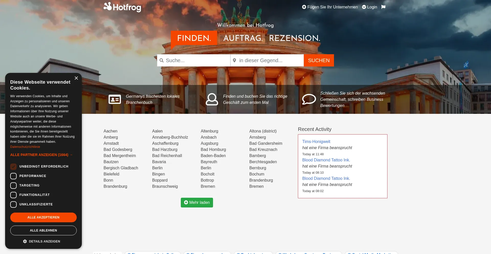 The website implements cookie consent mechanisms in compliance with privacy regulations such as GDPR or CCPA. This demonstrates that hotfrog.de adheres to data protection standards and provides users with control over personal data collection practices.