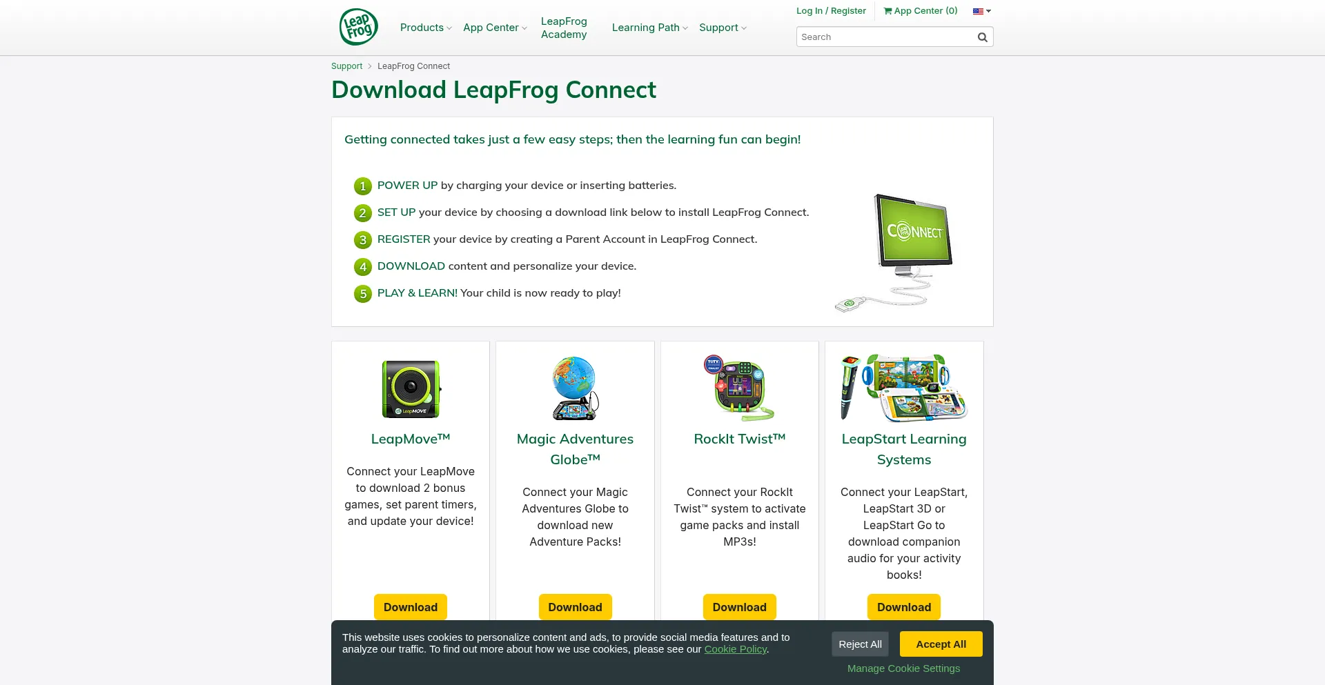 Connect your LeapMove to download 2 bonus games, set parent timers, and update your device!
