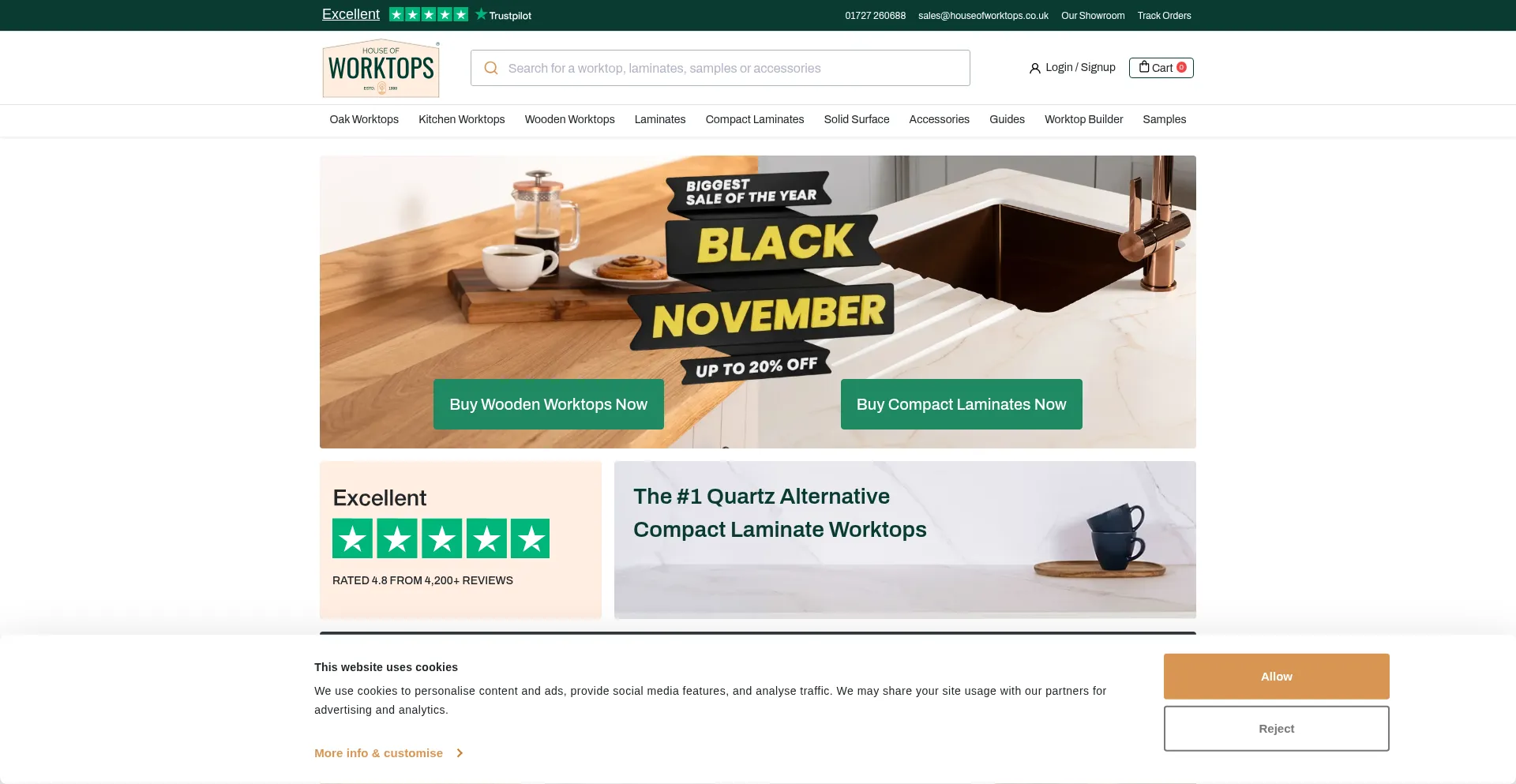 The website implements cookie consent mechanisms in compliance with privacy regulations such as GDPR or CCPA. This demonstrates that houseofworktops.co.uk adheres to data protection standards and provides users with control over personal data collection practices.