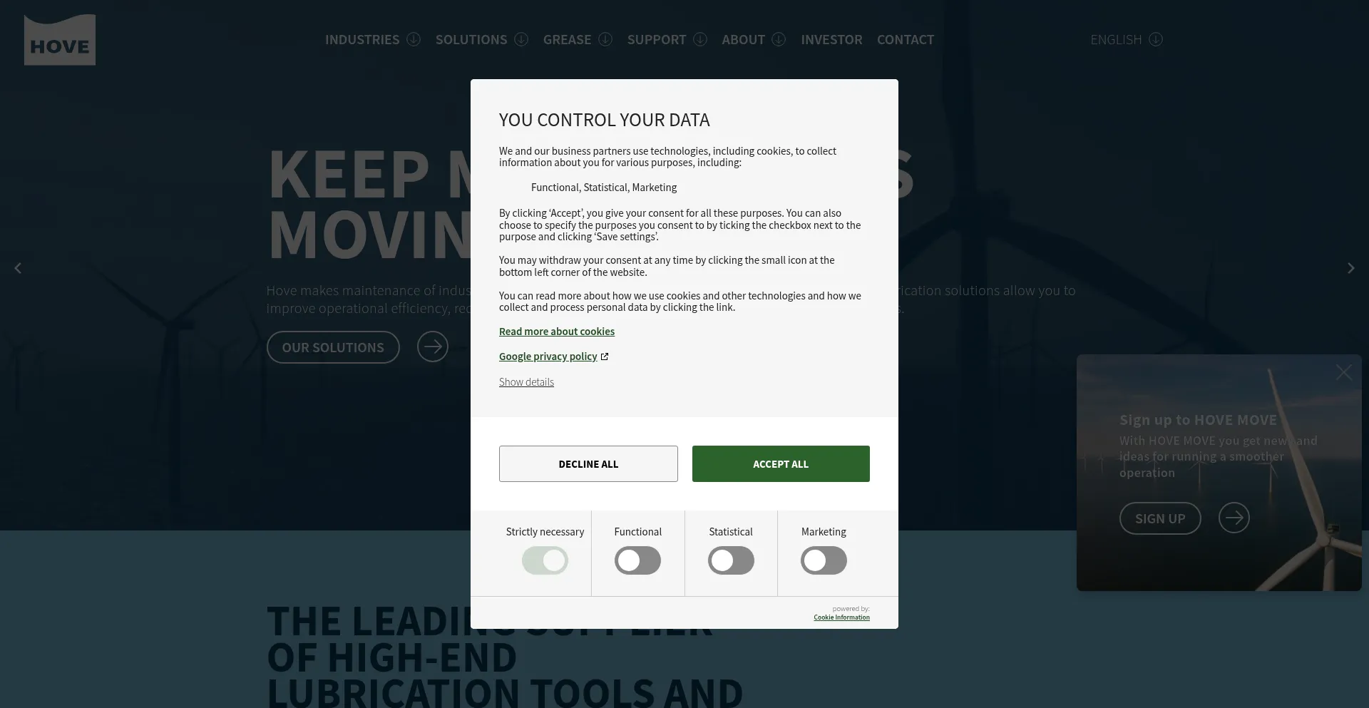 Hove is the world’s leading supplier of advanced lubrication solutions for industrial-scale machinery with demanding requirements.