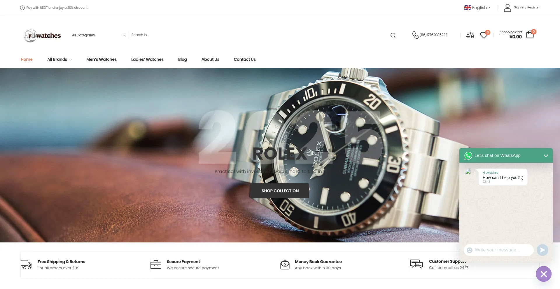 Scam - High Risk Shopping Expensive Brand Replica Watches Deals Helpdesk Registration Form Wordpress Platform Social Media Links Multilanguage China Young Domain Blacklisted
