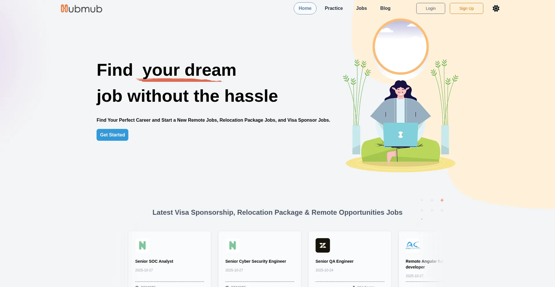 HubMub offers smart solutions for professionals, connecting you with remote work, visa sponsorship, and relocation opportunities. Track your progress, receive tailored advice, a...