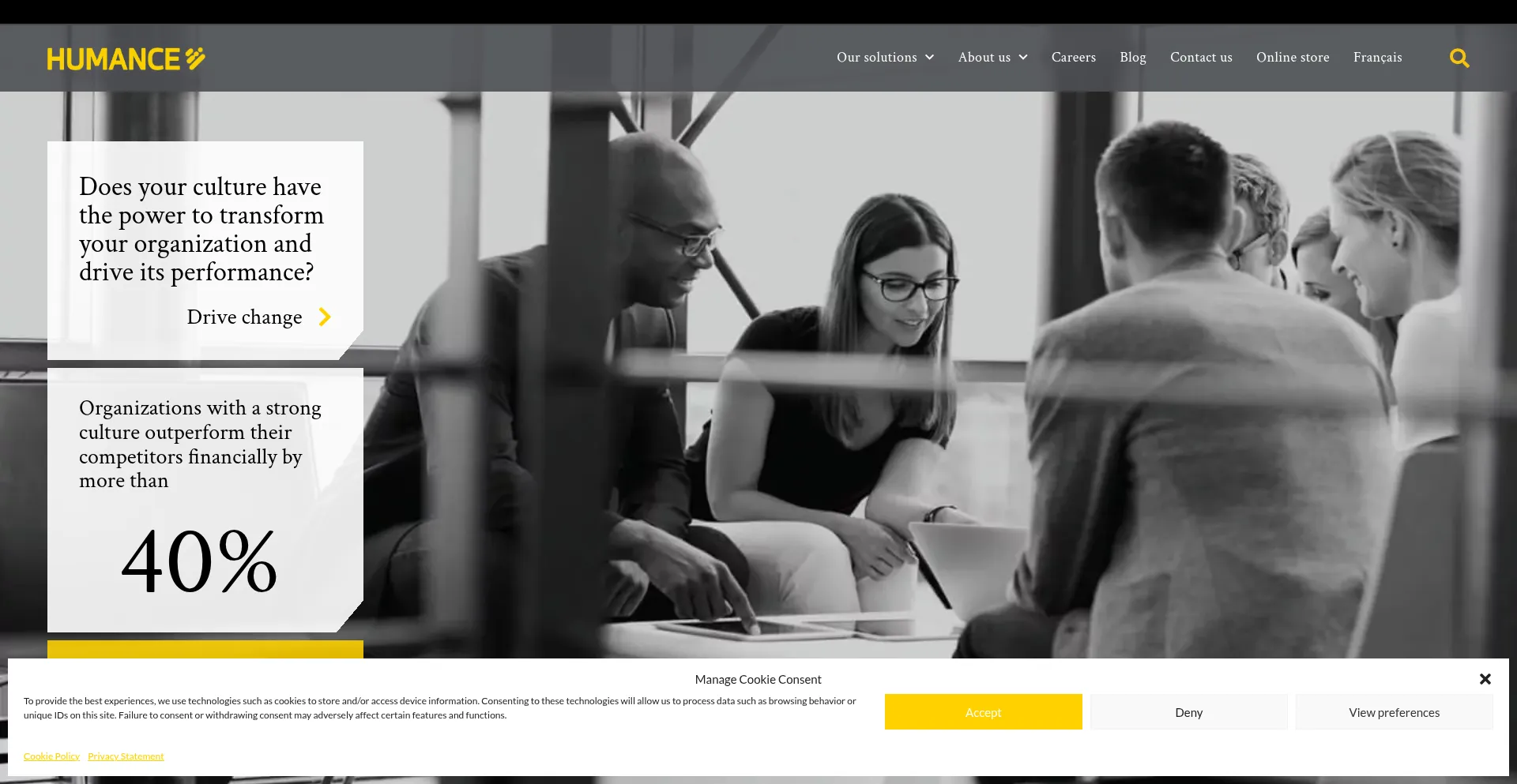 The humance.ca website uses Google Tag Manager to add and update tracking tags on its website.