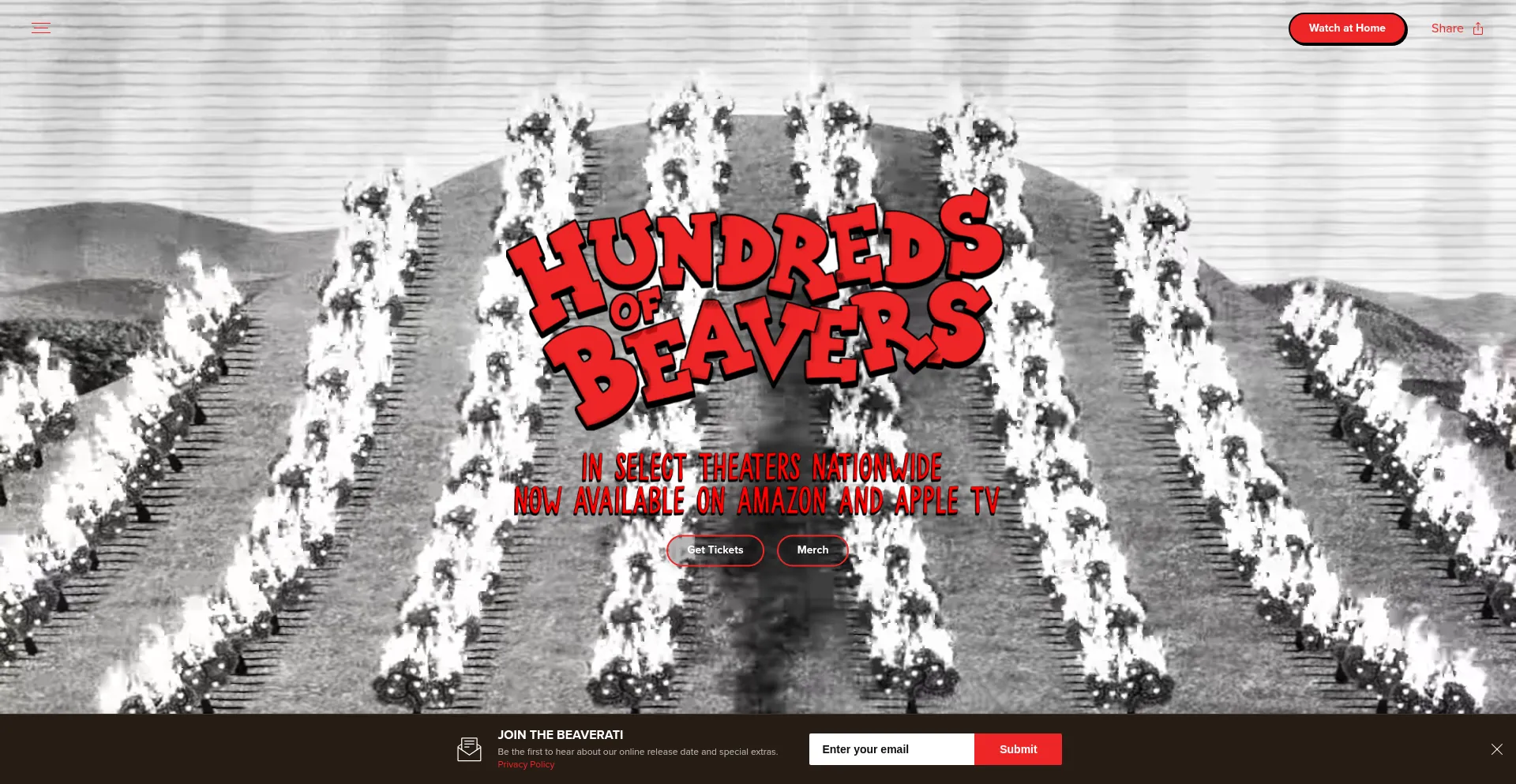 Watch the trailer, find screenings & book tickets for Hundreds of Beavers on the official site. Directed by: Mike Cheslik. Starring: Ryland Brickson Cole Tews, Olivia Graves, We...