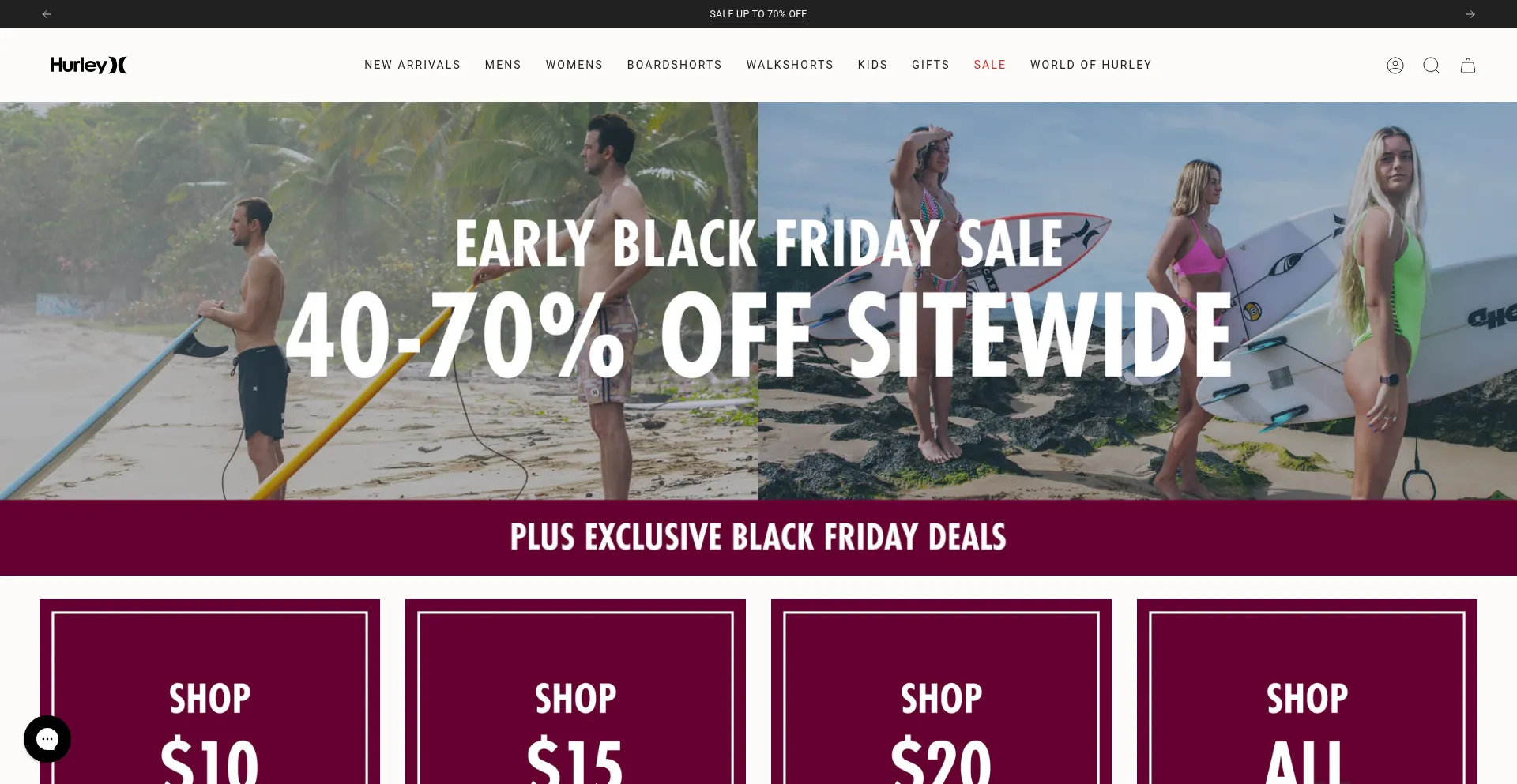 Analysis indicates that hurley.com operates as an e-commerce platform facilitating online transactions for goods or services. The website implements shopping cart functionality, payment processing systems, and product catalog features typical of commercial retail operations.