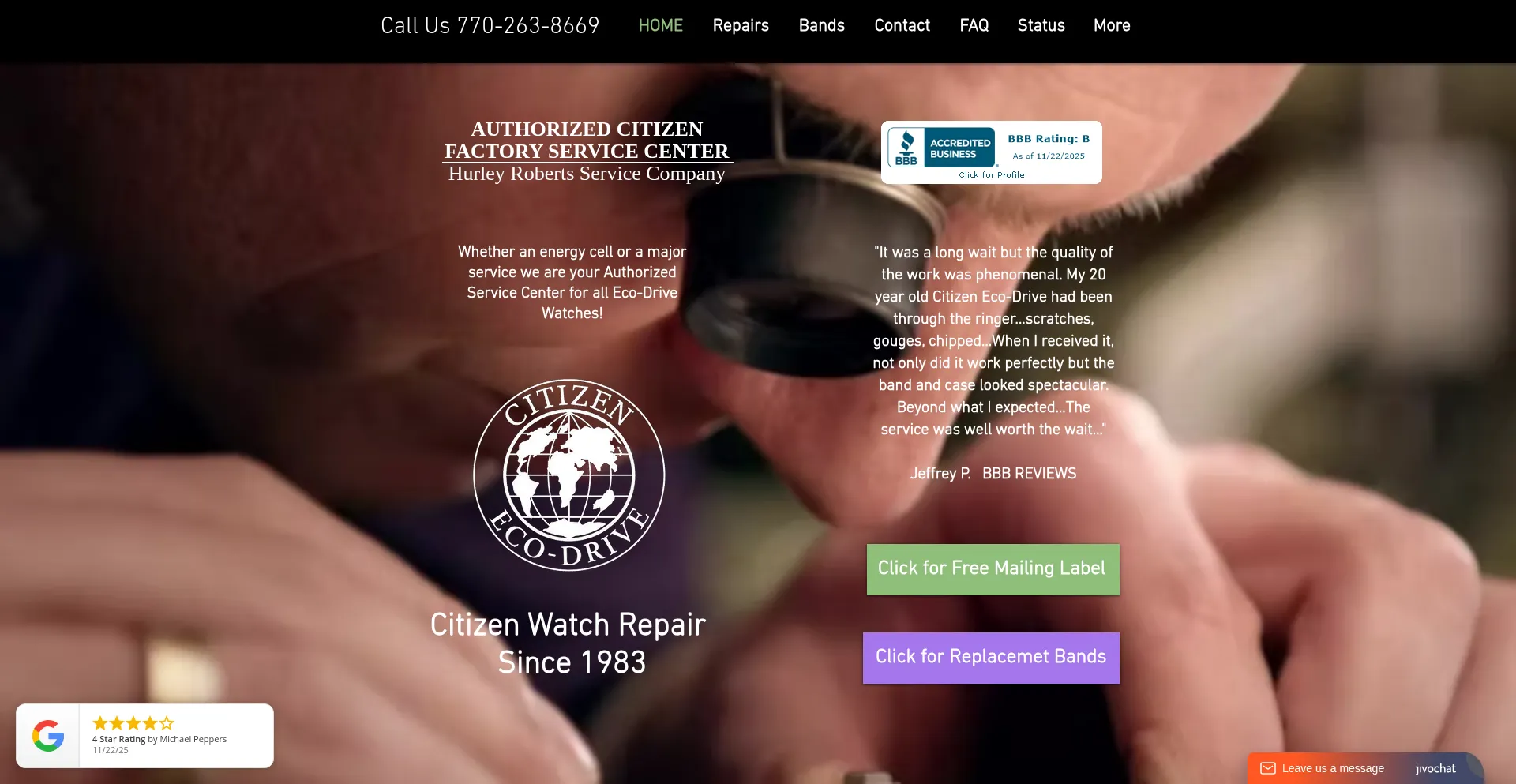 BBB A+ We are your Authorized Citizen Watch Factory Service Center. Hurley Roberts Service is family owned & operated, we have been serving you since 1983. All repairs are warra...