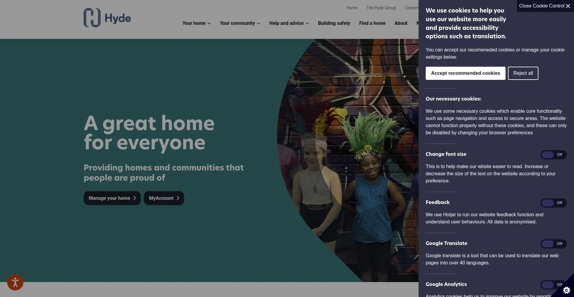 The website implements cookie consent mechanisms in compliance with privacy regulations such as GDPR or CCPA. This demonstrates that hyde-housing.co.uk adheres to data protection standards and provides users with control over personal data collection practices.