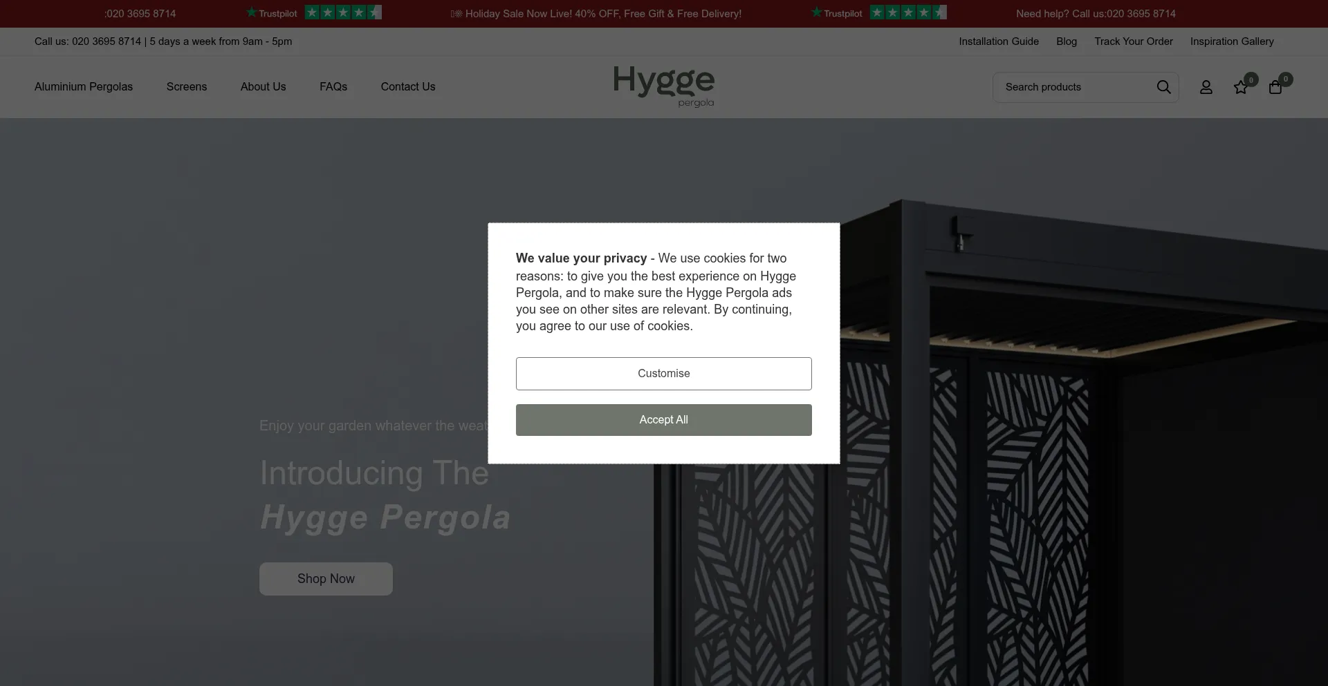 The website implements cookie consent mechanisms in compliance with privacy regulations such as GDPR or CCPA. This demonstrates that hyggepergola.co.uk adheres to data protection standards and provides users with control over personal data collection practices.