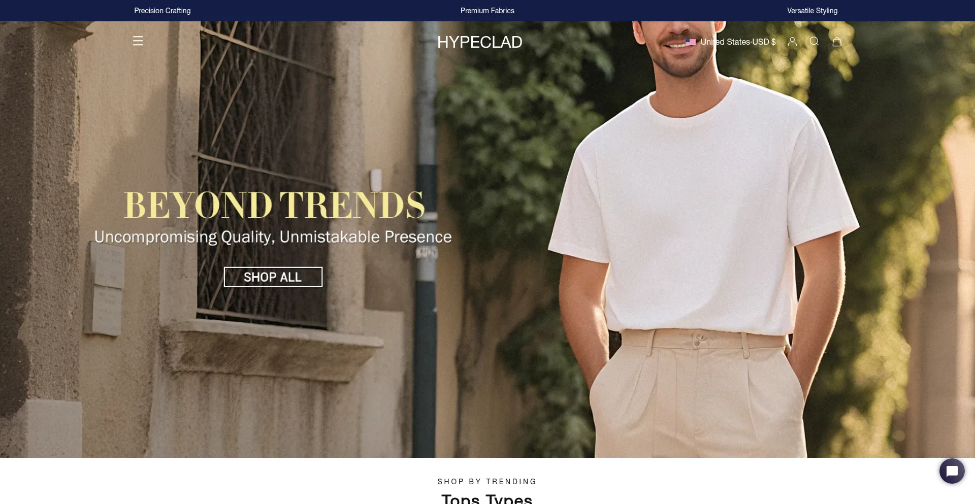Analysis indicates that hypeclad.com operates as an e-commerce platform facilitating online transactions for goods or services. The website implements shopping cart functionality, payment processing systems, and product catalog features typical of commercial retail operations.
