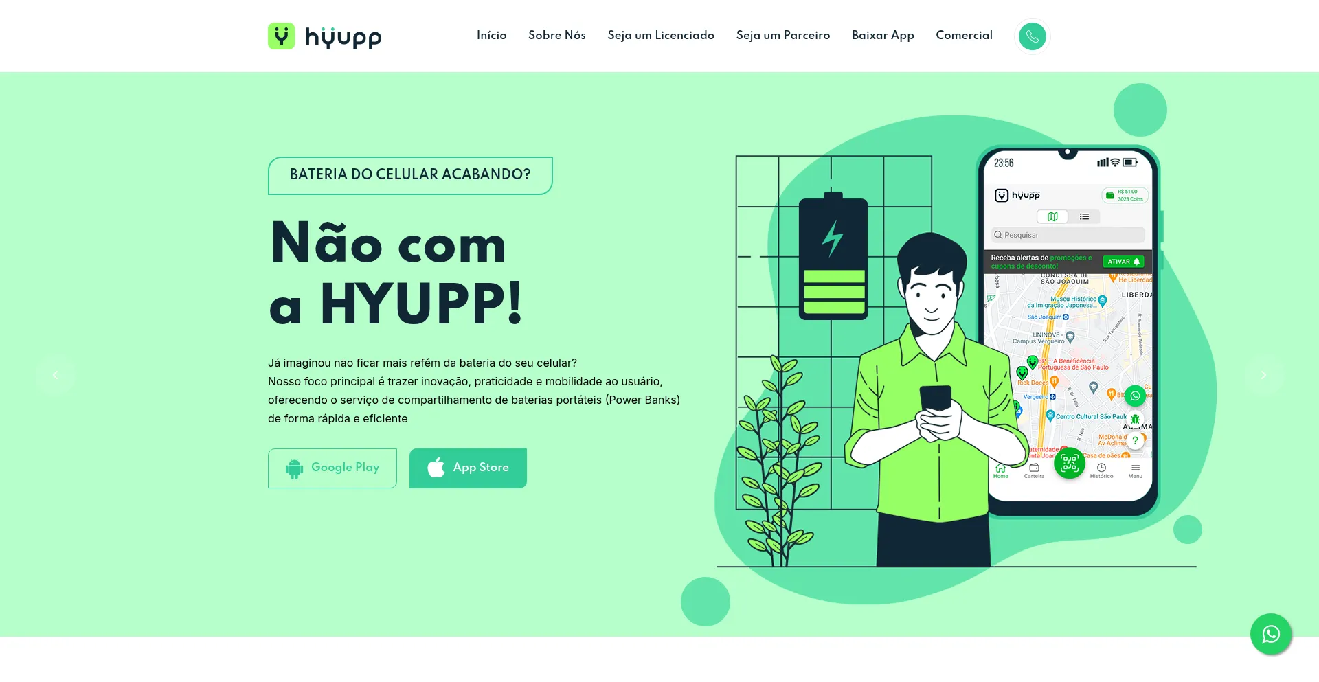 A Hyupp é a CARGA EXTRA que vai salvar seu dia quando acabar a bateria do seu celular ou tablet. São viárias estações de locação de BATERIAS PORTÁTEIS (power banks) espa...