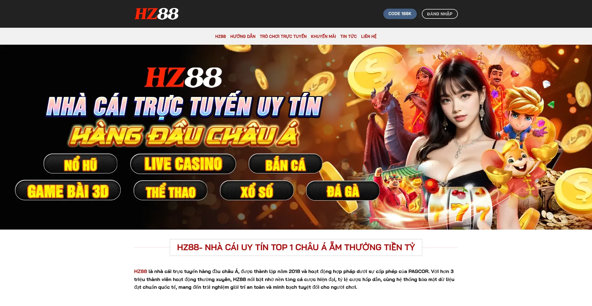 HZ88 là nhà cái trực tuyến hàng đầu châu Á, được thành lập năm 2018 và hoạt động hợp pháp dưới sự cấp phép của PAGCOR. Với hơn 3 tri�...