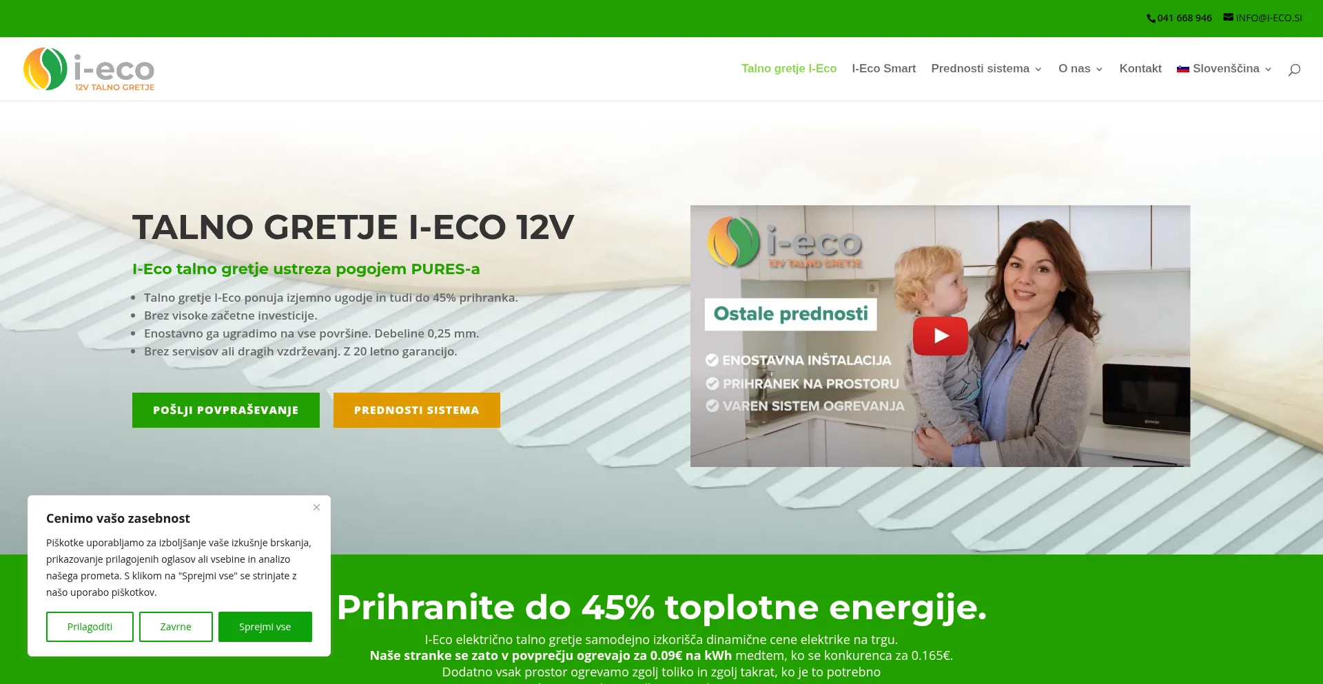 The website implements cookie consent mechanisms in compliance with privacy regulations such as GDPR or CCPA. This demonstrates that i-eco.si adheres to data protection standards and provides users with control over personal data collection practices.