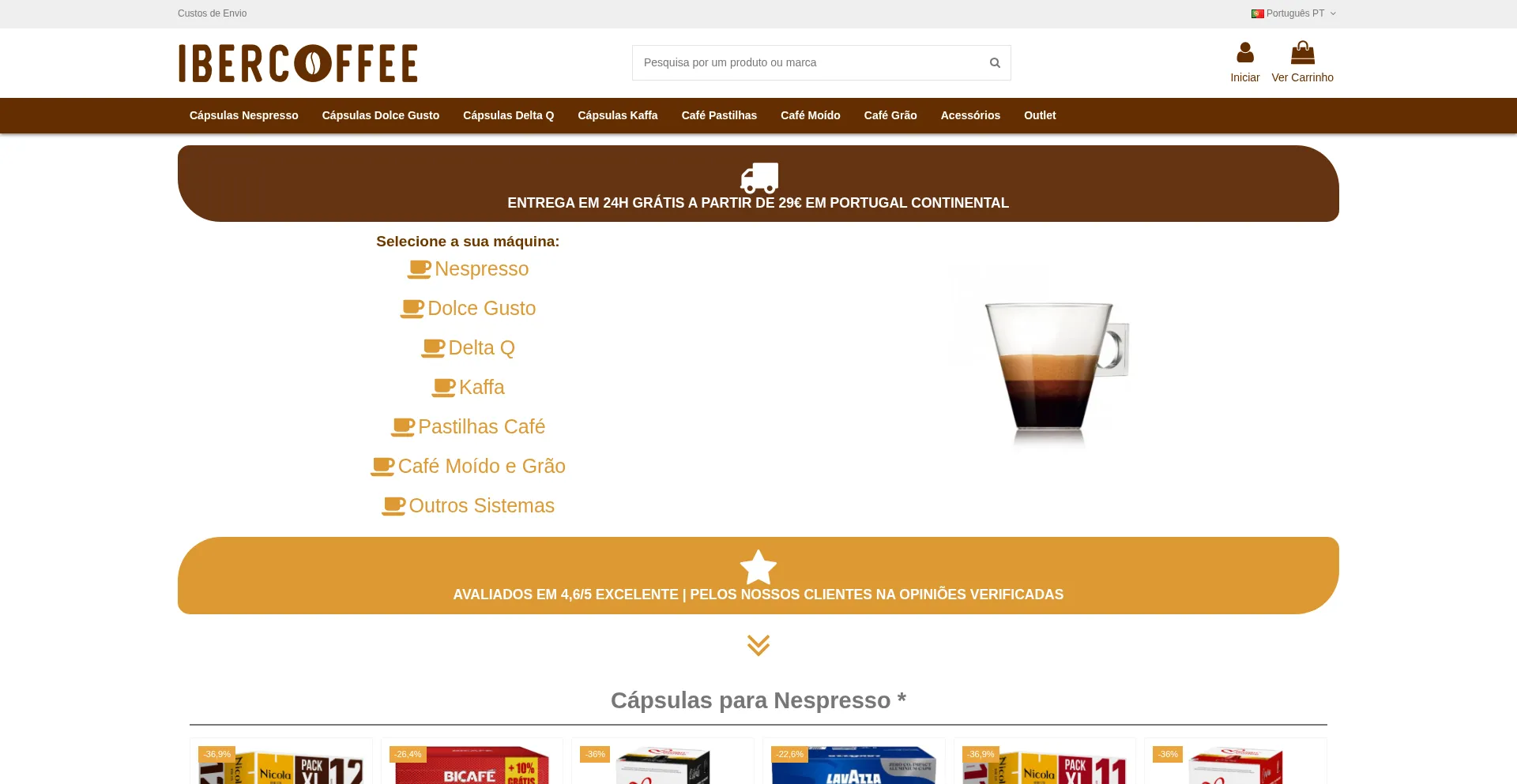 Na Iber Coffee compre café em cápsulas Delta Q, Dolce Gusto ou Nespresso, com entrega gratuita em Portugal Continental*.