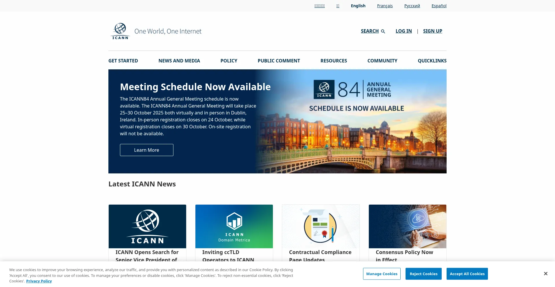 The website implements cookie consent mechanisms in compliance with privacy regulations such as GDPR or CCPA. This demonstrates that icann.com adheres to data protection standards and provides users with control over personal data collection practices.