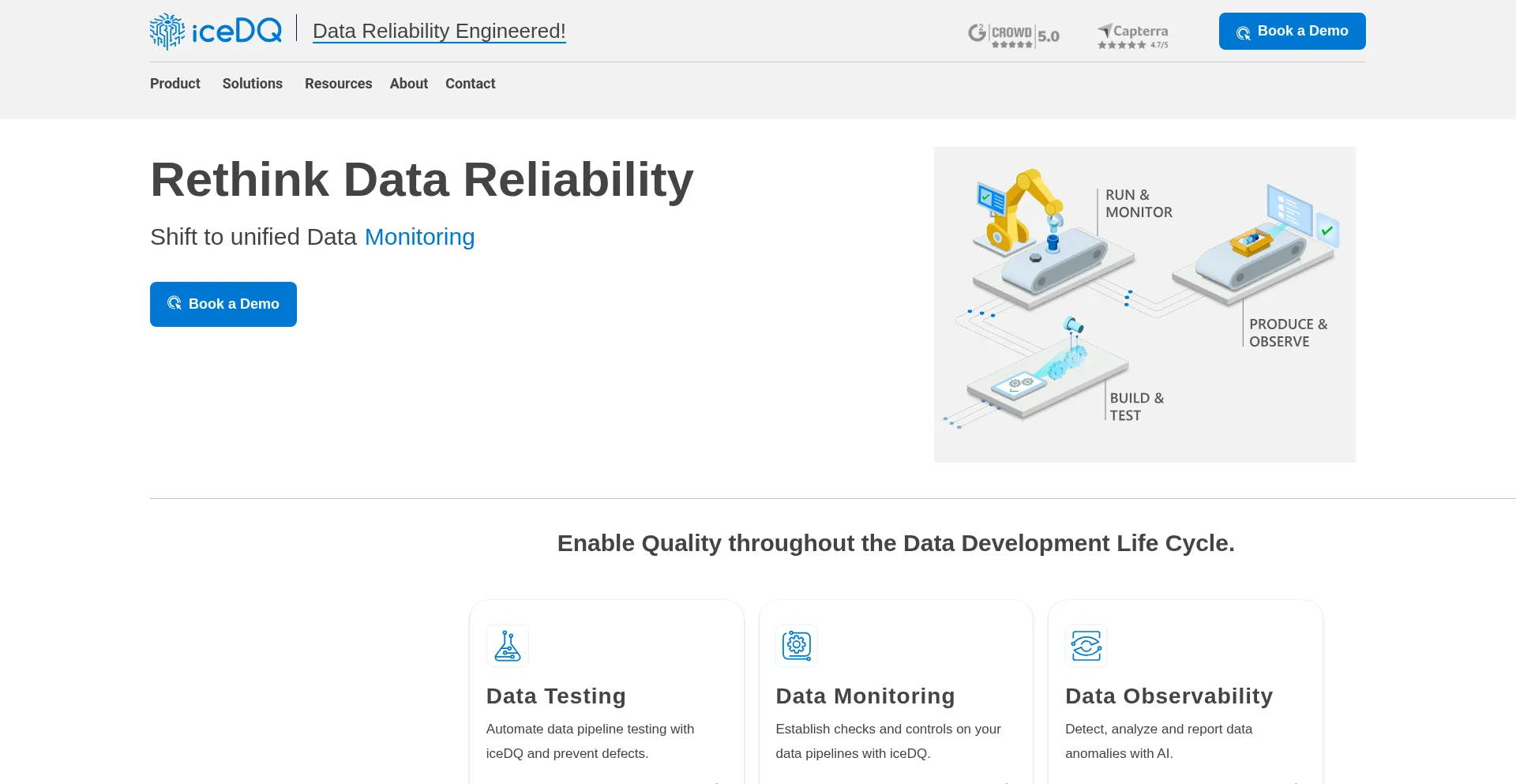 Deliver data reliability with automated data testing, ETL testing, data migration testing, big data lake testing, data monitoring & data observability.