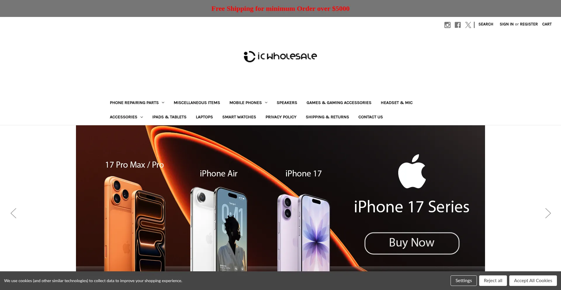 The website implements cookie consent mechanisms in compliance with privacy regulations such as GDPR or CCPA. This demonstrates that icwholesale.com adheres to data protection standards and provides users with control over personal data collection practices.